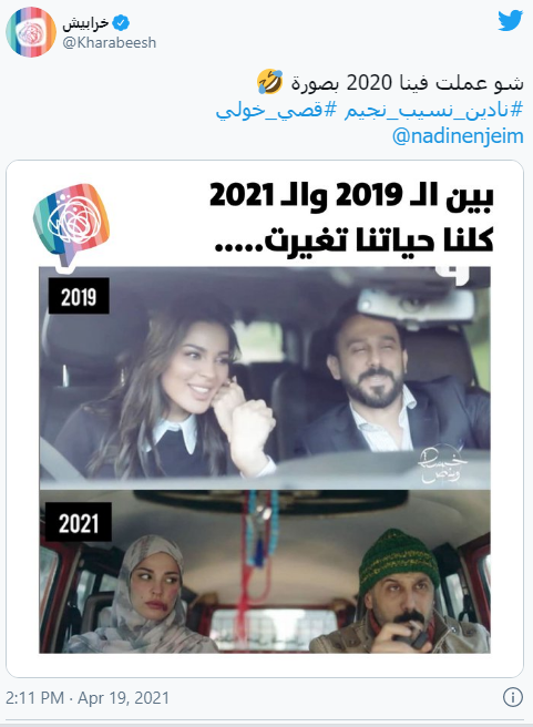واللافت أنه في اليومين الماضيين انتشرت صورة تجمع الثنائي داخل سيارة التقطت لهما عام 2019 من مسلسل “خمسة ونص” وصورة لهما التقطت داخل سيارة أخرى عام 2021 من مسلسل “عشرين عشرين” للتعبير عما آلت إليه أحوال اللبنانيين في ظل الأزمة الاقتصادية والاجتماعية الخانقة في خلال سنتين.