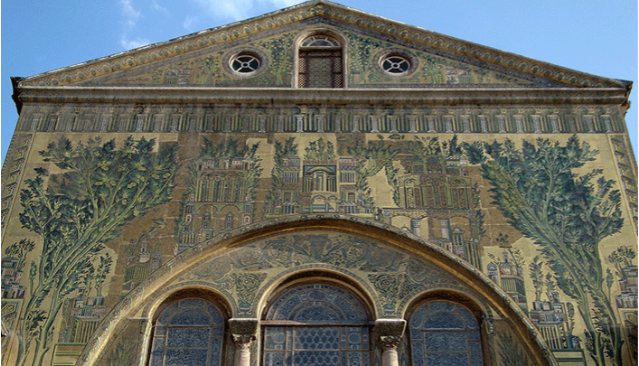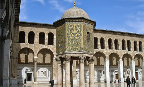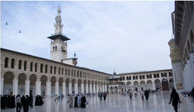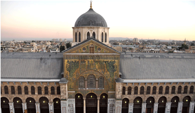 في عام 635 ميلادي، غزا العرب المسلمون مدينة دمشق وتمكنوا من الاستيلاء عليها، وبعد فترة قصيرة، أصبحت دمشق عاصمةً للخلافة الإسلامية التي تحكمها سلالة بني أمية التي يعود أصلها لقبيلة قريش، وهي نفس القبيلة التي ينحدر منها النبي محمد.