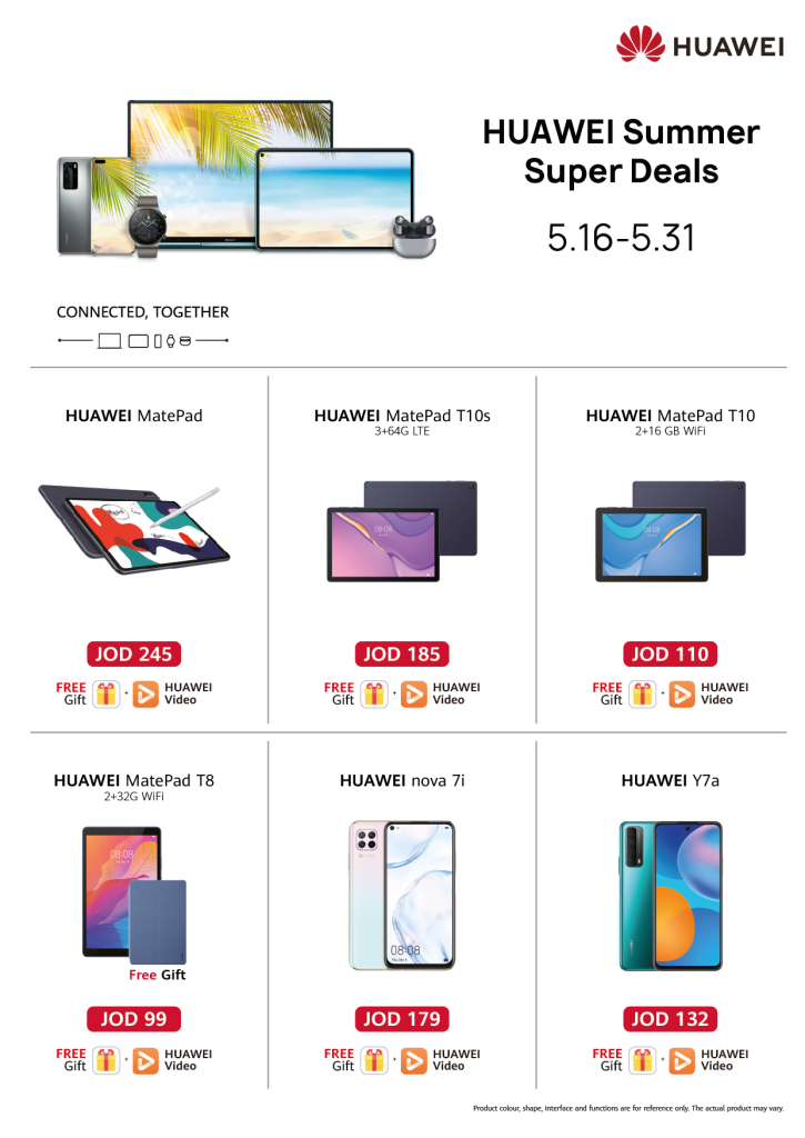 ضمن عروض هواوي للصيف، يتاح جهاز HUAWEI MatePad T10 بسعر 110 دنانير مع حزمة من الهدايا واشتراك مجاني لمدة شهرين في خدمة HUAWEI Video VIP.