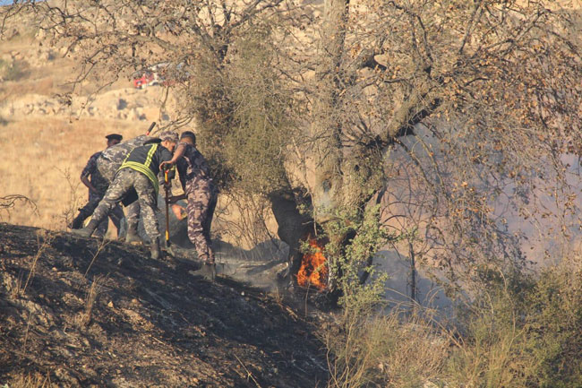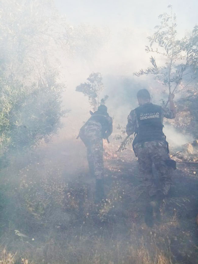 و بذلت فرق الإطفاء تساندها قوات الدرك جهود مضنيه في عمليات اخماد الحريق و السيطرة عليه وذلك لوعورة المنطقة التي تتصف بالتضاريس الصعبة ولم ينتج عن الحريق أية إصابات بالأرواح.