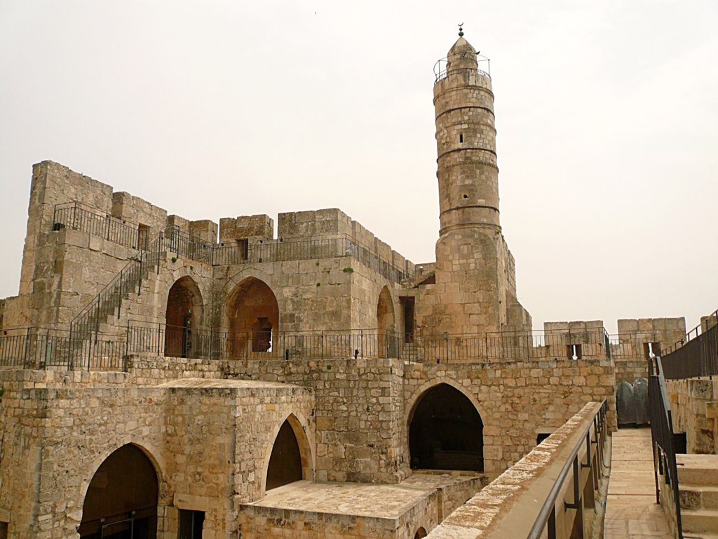 أنشئت قلعة القدس منذ أيام اليبوسيين الأوائل، إلا أنها هدمت وأعيد إنشاؤها أكثر من مرة عبر تاريخها العريق، فيها خمسة أبراج للمراقبة، أكبرها برج داود الذي يقع في الجهة الشمالية الشرقية منها، وقد أنشأ فيها السلطان المملوكي الملك الناصر محمد بن قلاوون في سنة (710هـ/ 1310م) مسجداً للصلاة من أجمل المساجد في القدس خارج الحرم الشريف. واهتم البريطانيون بالقلعة، ورمموها وحولوها إلى مركز ثقافي، وقاعات معارض محلية، ما أثار حفيظة المجلس الشرعي الإسلامي الأعلى، الذي تولى الإشراف عليها حتى 1926م.