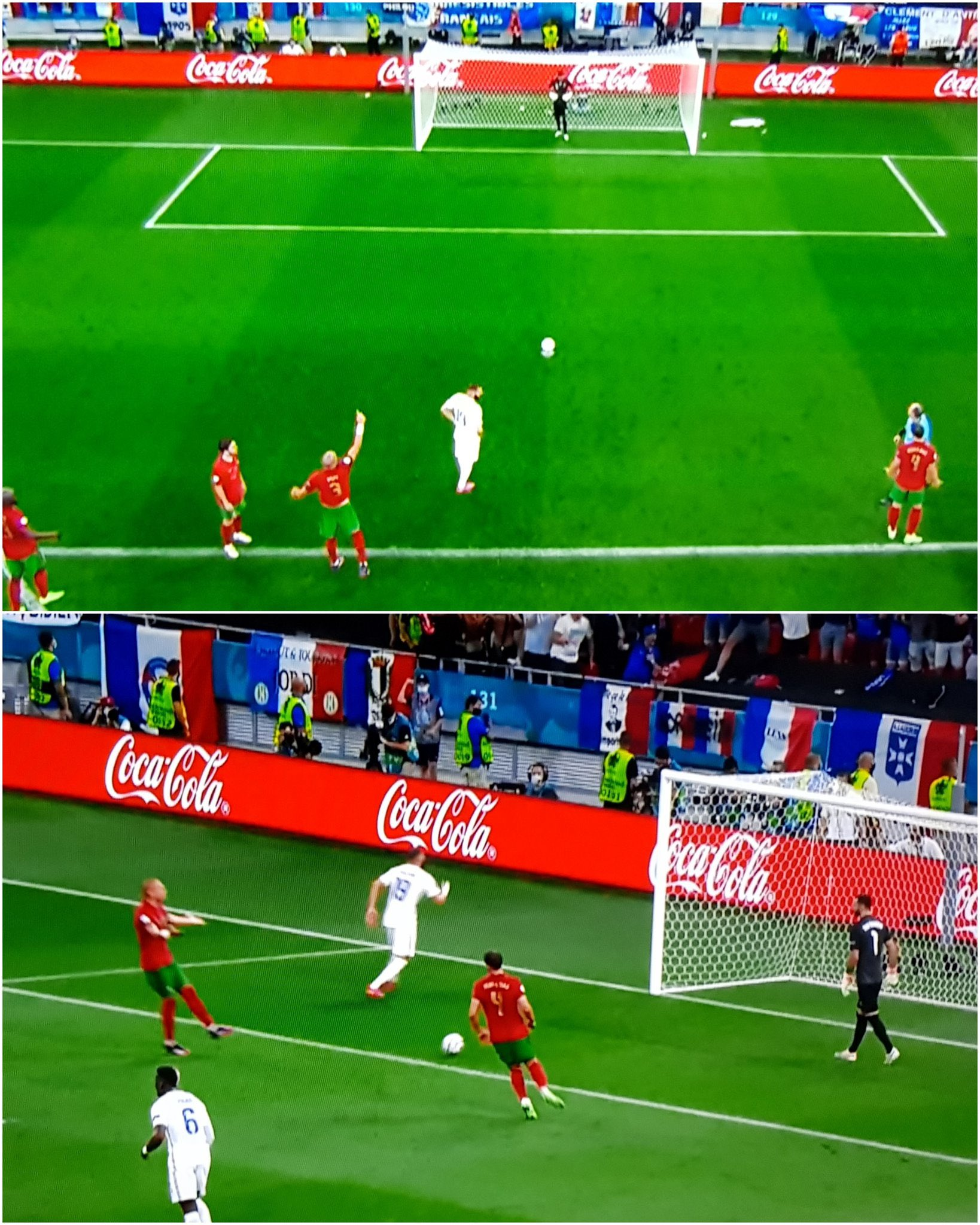 المثير أن بيبي مدافع البرتغال، صاح في وجه زميله روي باتريشيو بعد تسجيل بنزيما هدف التعادل، لأن الحارس البرتغالي لم يلتزم بتعليمات بيبي بالارتماء في الزاوية اليمنى قبل ثوان من تسديد كريم بنزيما للركلة.