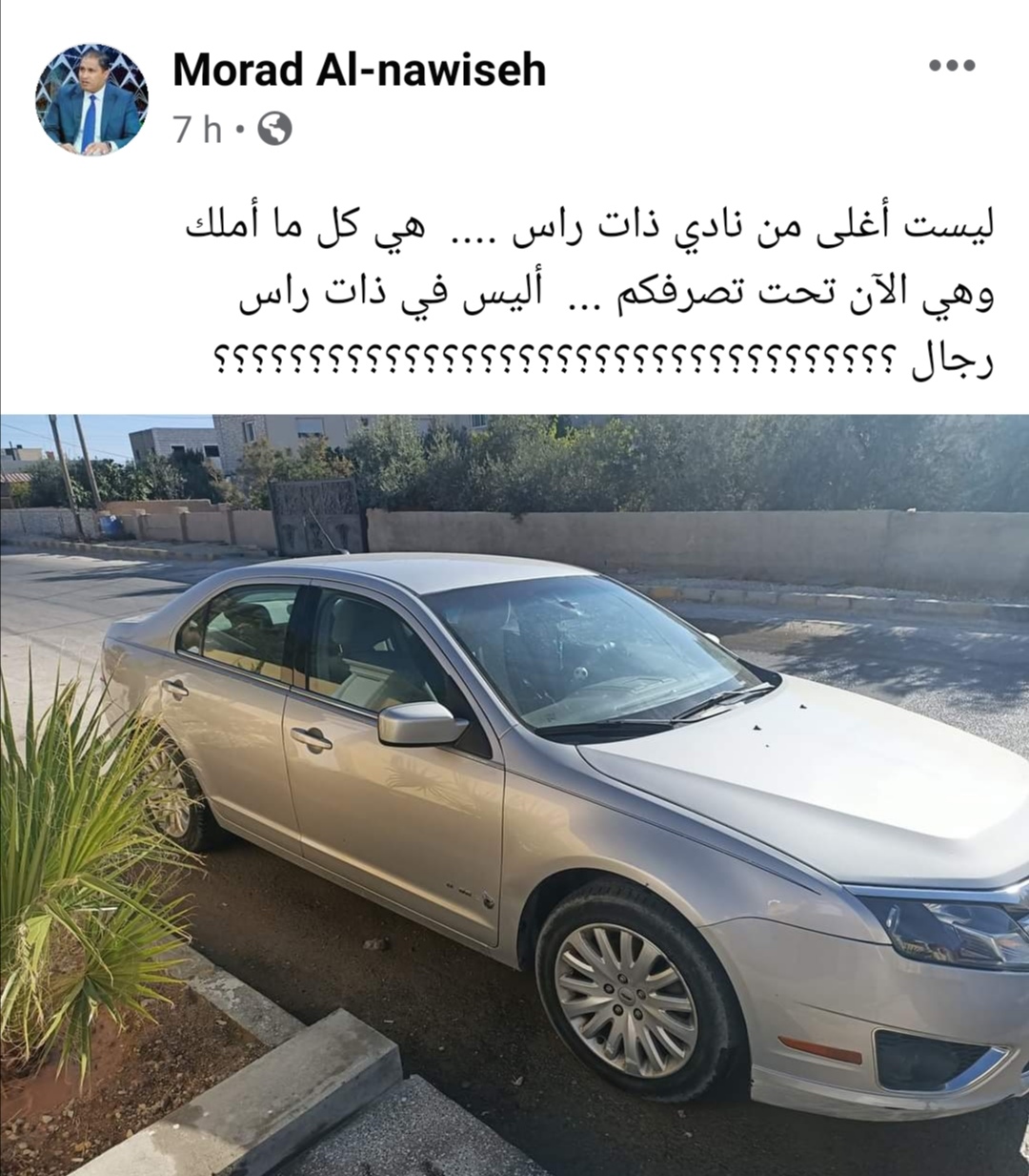 ونشر النوايسة عبر صفحته على الفيس بوك، بان مركبته ليست اغلى من النادي وهي كل ما يملك، وهي الآن تحت تصرف النادي.