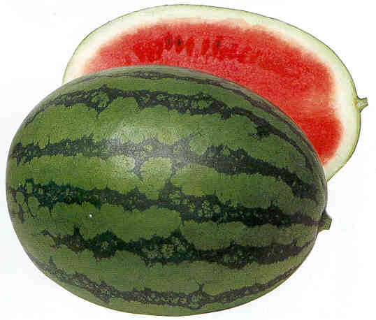 في حين أن فاكهة البطيخ تعتبر نوعًا من أنواع البطيخ، على عكس البطيخ الأخرى، فهي ليست من جنس كوكوميس. ينتج السطح الخارجي الأملس عادة قشرة خضراء داكنة مع خطوط أو بقع صفراء. ينتج البطيخ اللب اللذيذ ويتراوح من الأحمر الغامق إلى الوردي. ومع ذلك، يأتي أحيانًا باللون البرتقالي أو الأصفر أو الأبيض.