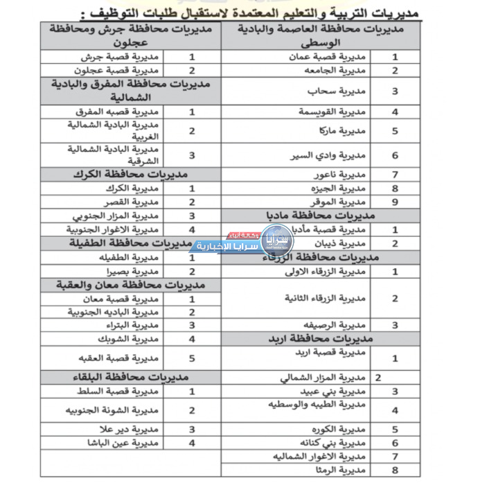 ودعت الوزارة الراغبين بالتنافس على الوظائف التقدم بطلبات توظيف خلال الفترة الممتدة من صباح الثلاثاء الموافق 10 آب لغاية نهاية دوام يوم الثلاثاء 17 آب؛ وذلك من خلال مديريات التربية والتعليم التي تبلغ عددها 42 مديرية.