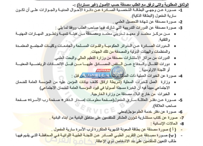 ولفتت إلى أنه لن يتم النظر بأية طلب غير مطابق لشروط الإعلان أو يوجد به نقص بالوثائق المطلوبة.