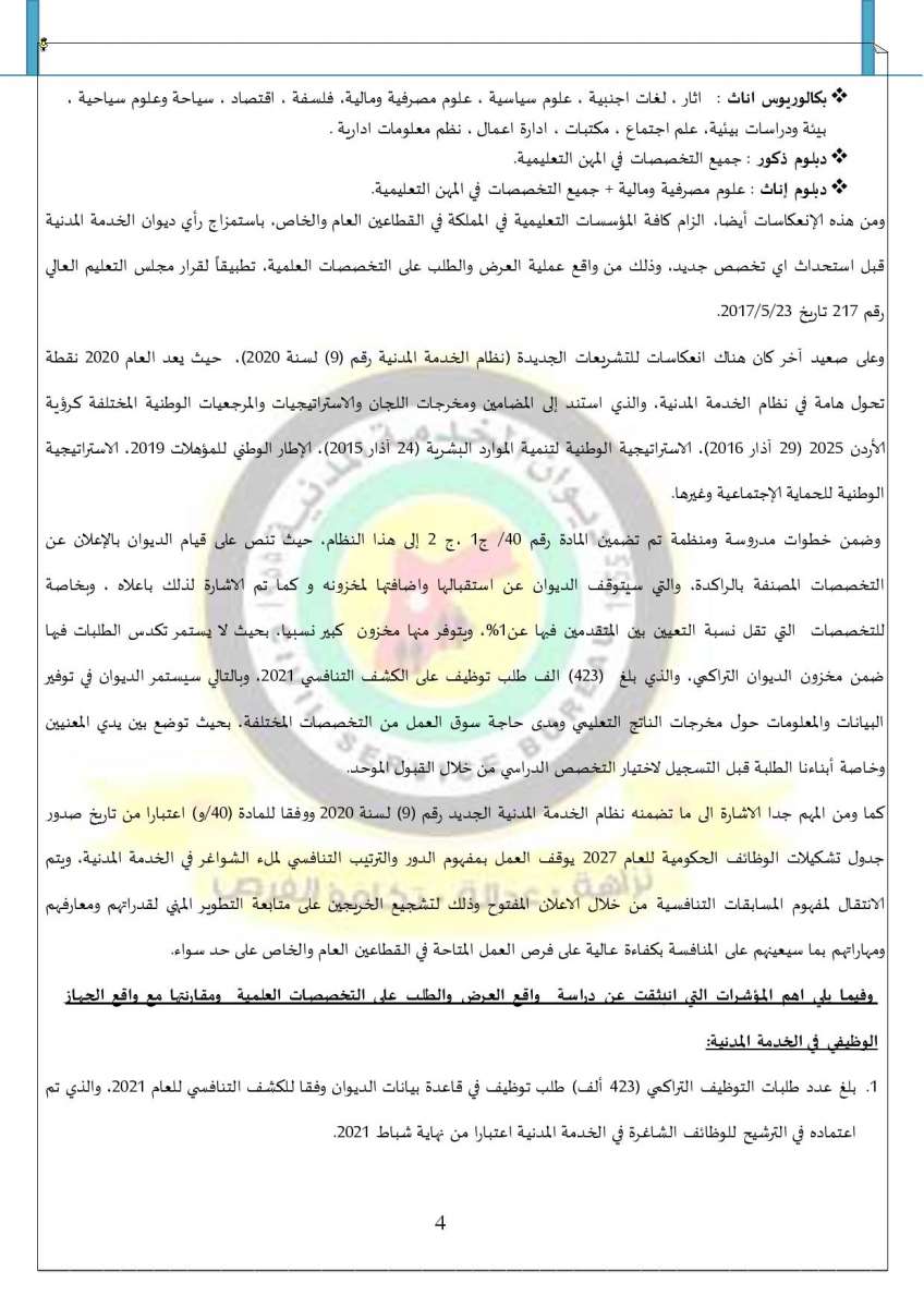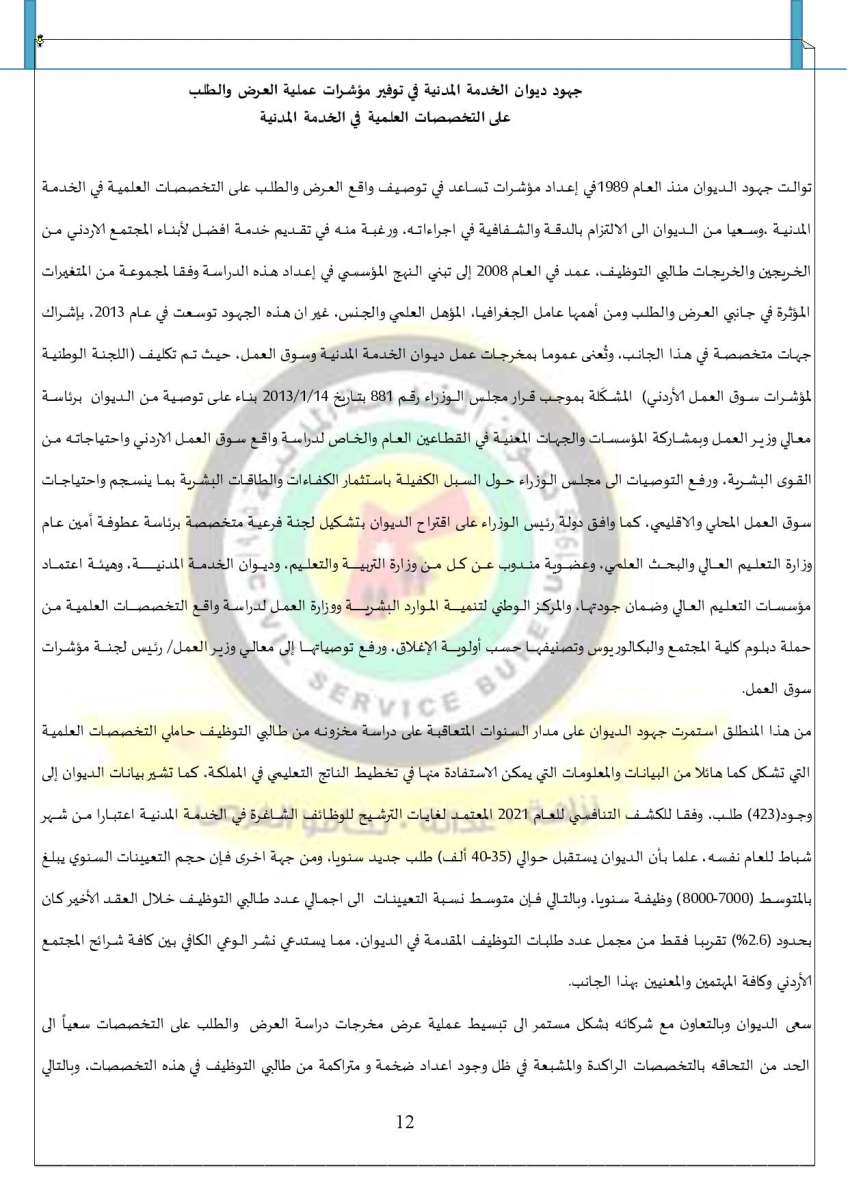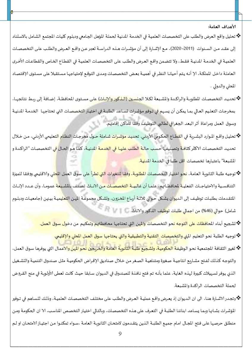 سرايا - أطلق ديوان الخدمة المدنية اليوم الخميس خلال مؤتمر صحافي في مبنى الديوان مؤشرات دراسة واقع العرض والطلب على التخصصات العلمية المطلوبة وغير المطلوبة (الراكدة والمشبعة)، وذلك قبل إعلان نتائج الثانوية العامة (التوجيهي).