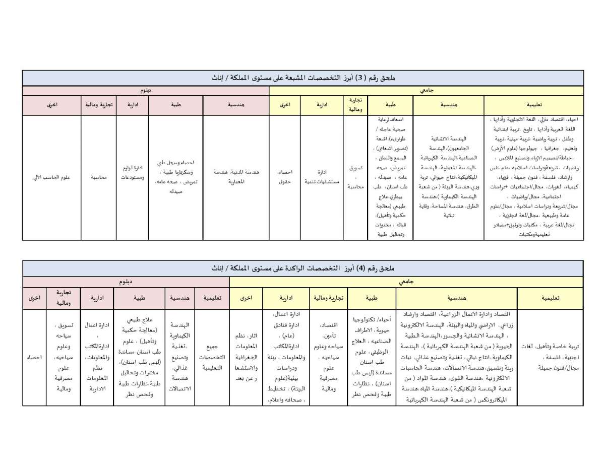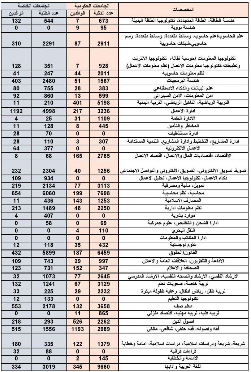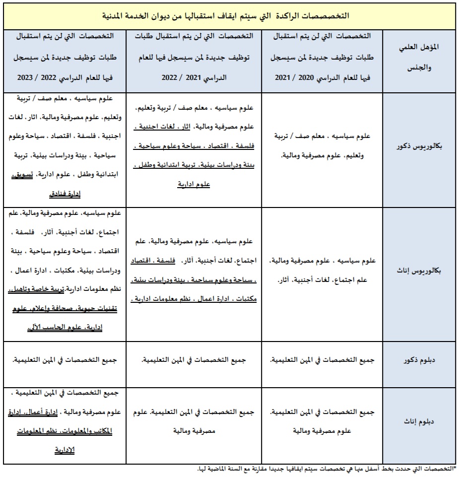 ولفت إلى أن ذلك سيتيح لخريجي الثانوية، الاطلاع على واقع هذه التخصصات، من حيث تصنيفها لدى الديوان بالراكدة والمشبعة والمطلوبة، قبل المباشرة بالتسجيل على موقع القبول الموحد.