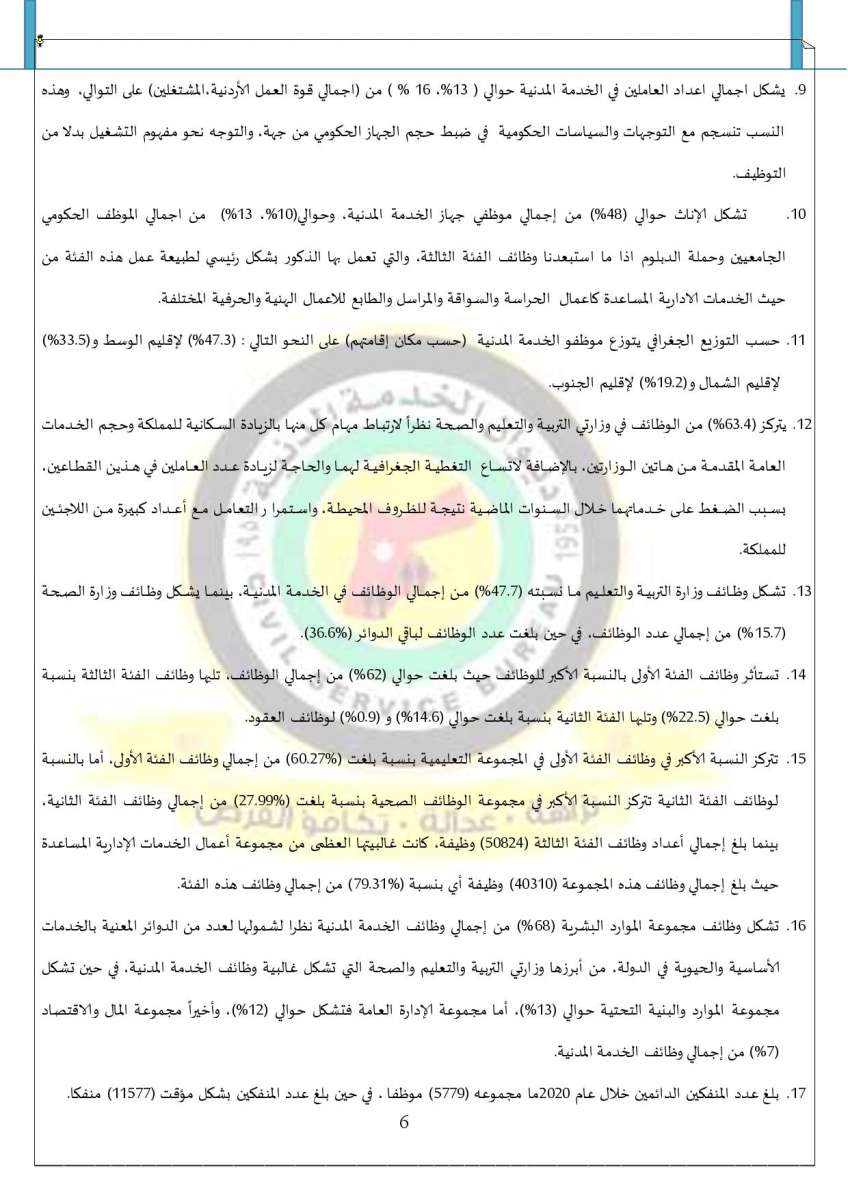 وأكّد أن "ديوان الخدمة المدنية لا يتحمل مسؤولية البطالة منفرداً” وأن الديوان يحتاج إلى ثمانية سنوات لاستيعاب خريجي السنة الواحدة.
