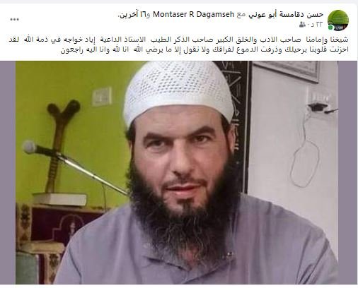حسن دقامسة قال ناعيا المرحوم: شيخنا وإمامنا صاحب الادب والخلق الكبير صاحب الذكر الطيب الاستاذ الداعية إياد خواجه في ذمة الله لقد احزنت قلوبنا برحيلك وذرفت الدموع لفراقك ولا نقول إلا ما يرضي الله انا لله وانا اليه راجعون".