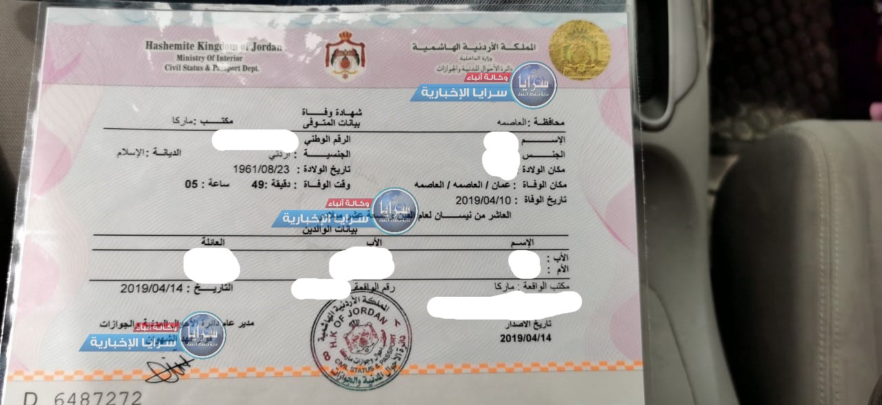 وتالياً إثبات الطالبة الصادر من وزارة التربية و التعليم و شهادة وفاة الوالدين :