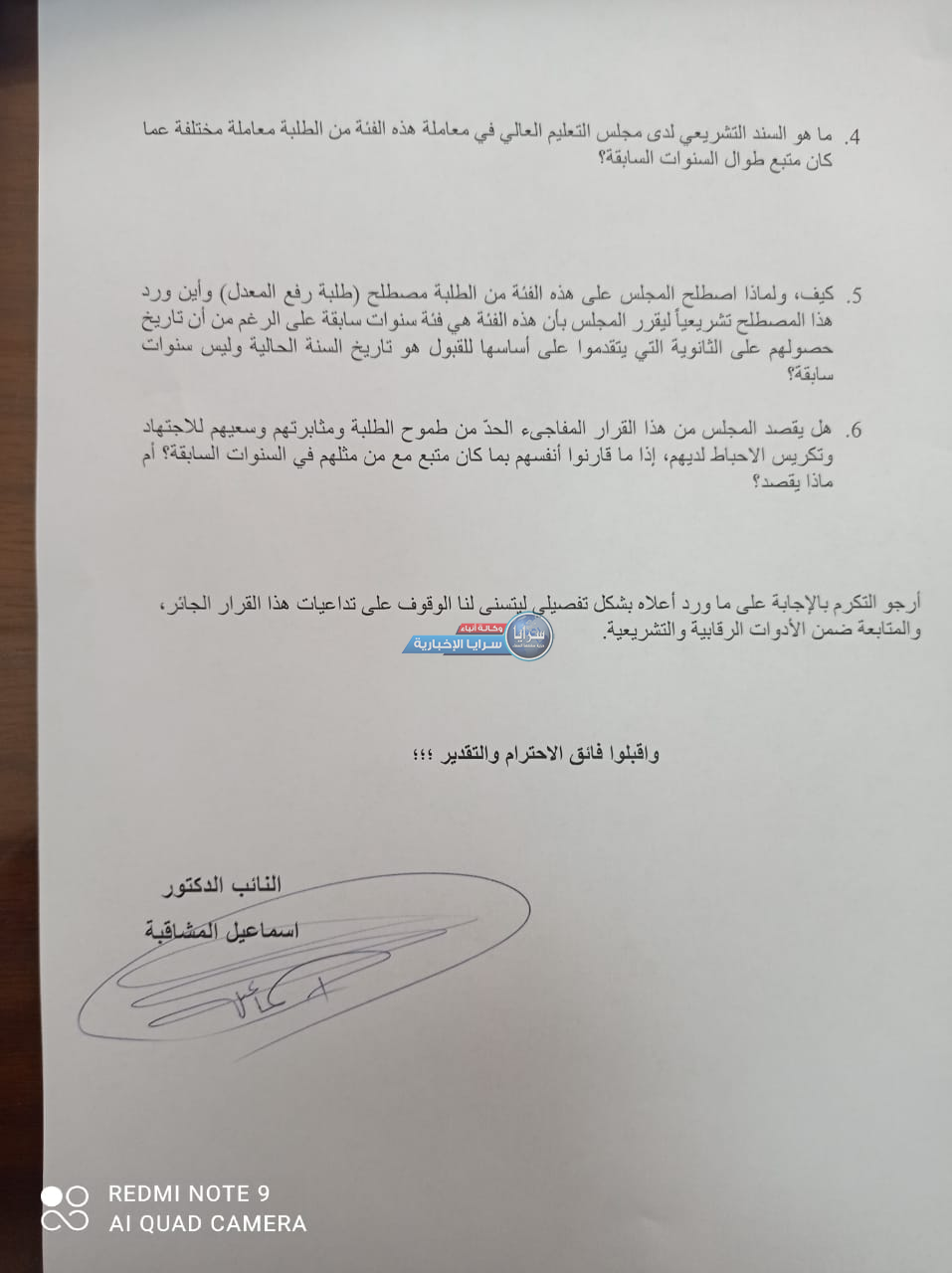 وتالياً الاسئلة التي وجهها النائب المشاقبة الى وزير التعليم العالي والتربية محمد أبو قديس، والتي زود سرايا بها:-