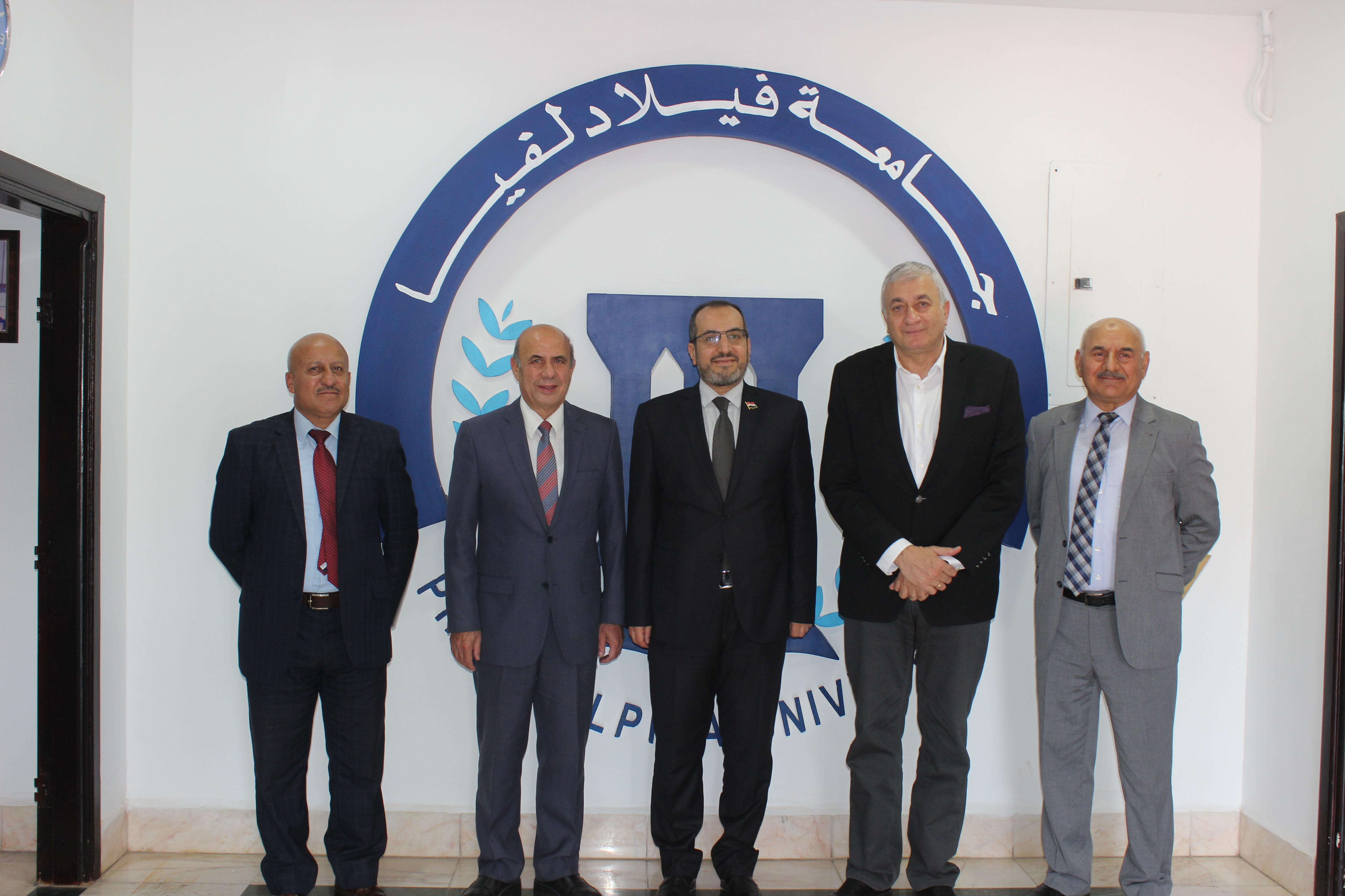 من جانبه أعرب الدكتور التميمي عن شكره واعتزازه بالرعاية التي توليها جامعة فيلادلفيا للطلبة العراقيين الدارسين فيها، ولأعضاء الهيئة التدريسية العراقيين ضمن كادرها التدريسي، مثمنا الإجراءات والتسهيلات التي تقدمها الجامعة لطلبتها الوافدين ومراعاتها لظروف إقامتهم وخاصة في ظل الظروف والتحديات التي فرضتها جائحة كورونا على العالم أجمع، مؤكداً عمق العلاقات الأخوية التي تجمع البلدين و سعي السفارة إلى تفعيل برامج التبادل الثقافي للطلبة وأعضاء الهيئة التدريسية العراقيين لقضاء الزيارات العلمية في الجامعات الأردنية وخاصة جامعة فيلادلفيا التي تحظى بسمعة علمية متميزة على المستوى المحلي والدولي .