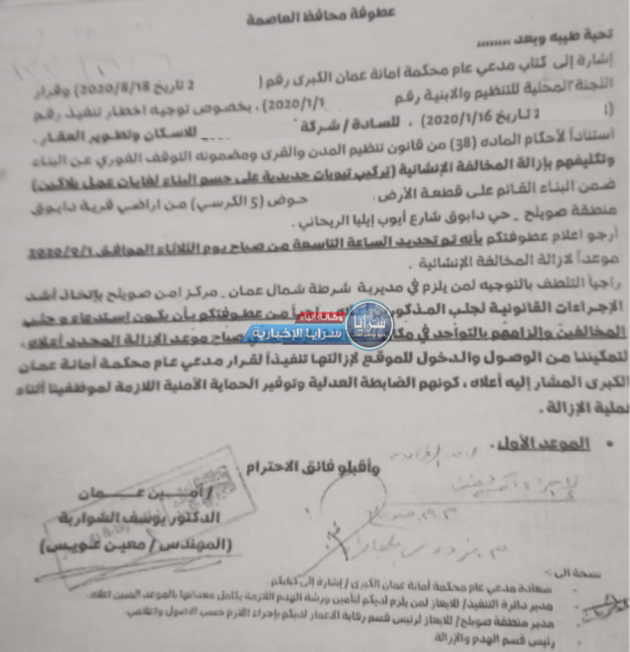 وطالب مواطنون عبر سرايا من امين عمان الخروج من التحديات التي تواجهها العاصمة بحسب ما صرح به، وعدم ارتجاف يديه في تطبيق القوانين الرادعة بحق كل من يتجاوز القانون.