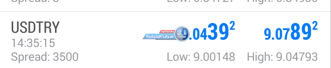 سرايا - سجلت الليرة التركية اليوم الأربعاء، ادنى هبوط لها في التاريخ مقابل الدولار، حيث تراجعت إلى أدنى مستوى لها بالتاريخ بتسجيله 9.05، قبل قليل.