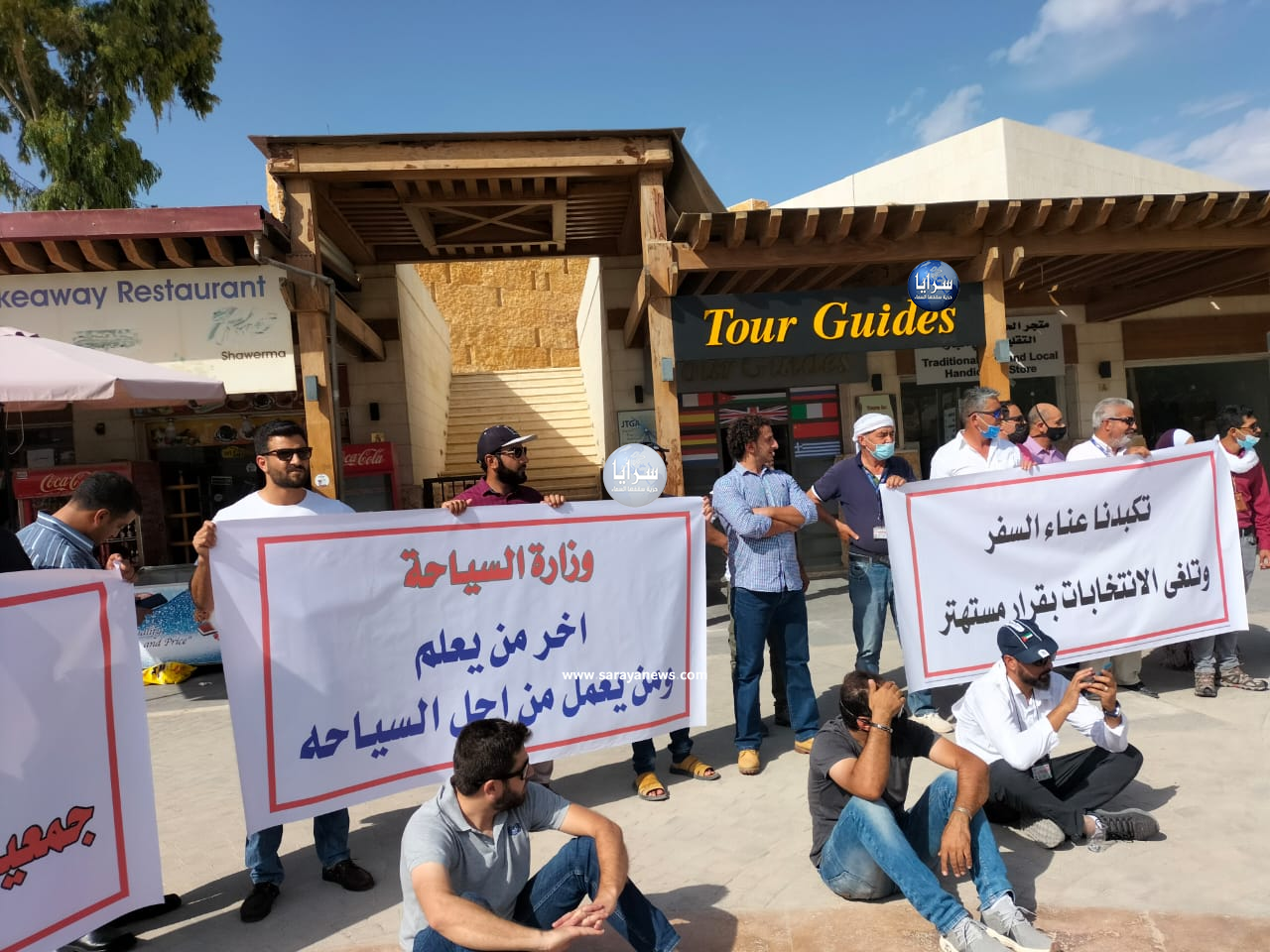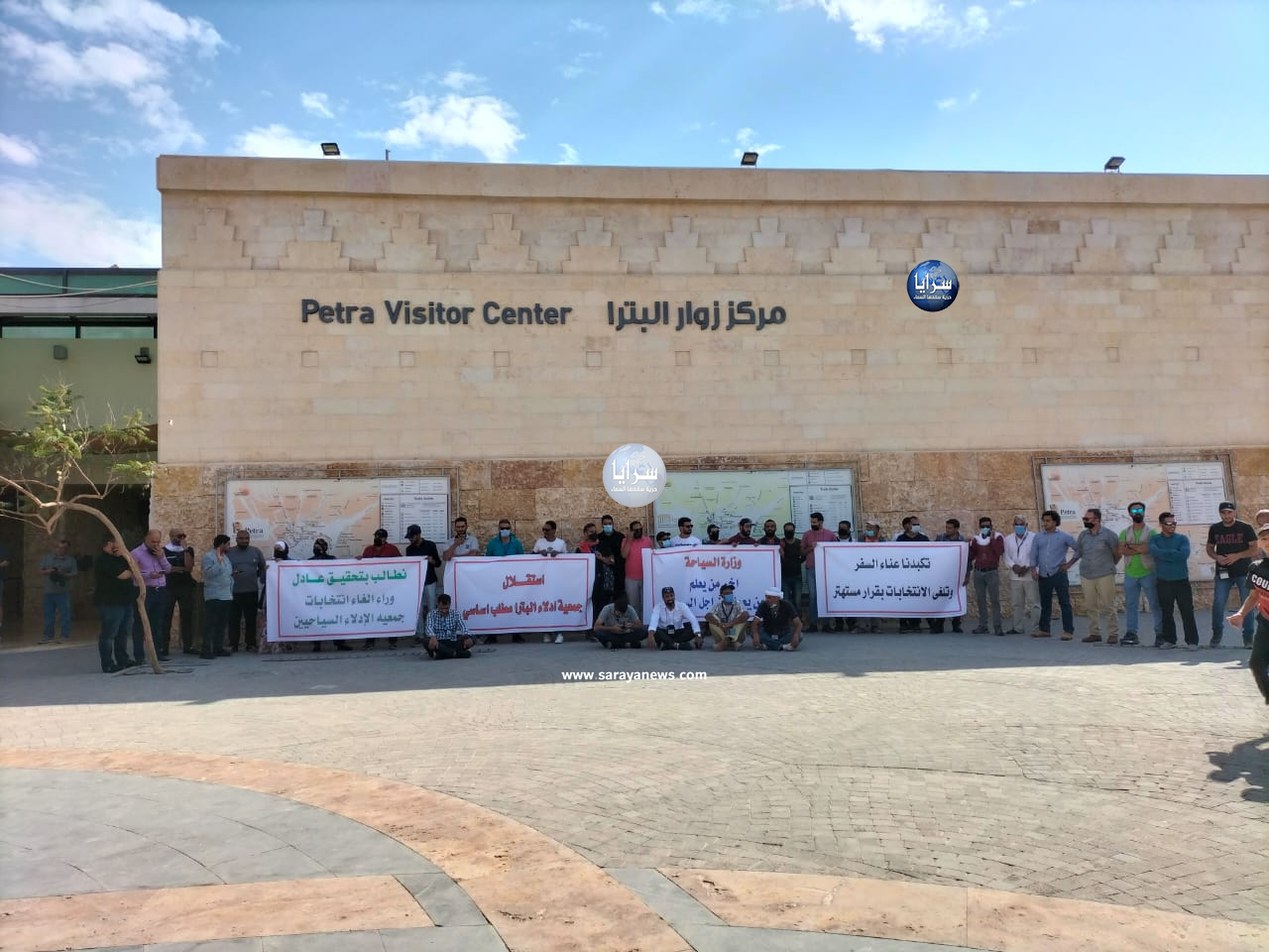 نفذ الإدلاء السياحيون في البترا وقفة احتجاجية سلمية أمام مركز زوار البترا الحكومي رفضاً لإلغاء انتخاباتهم المقررة يوم أمس من قبل وزارة السياحة.