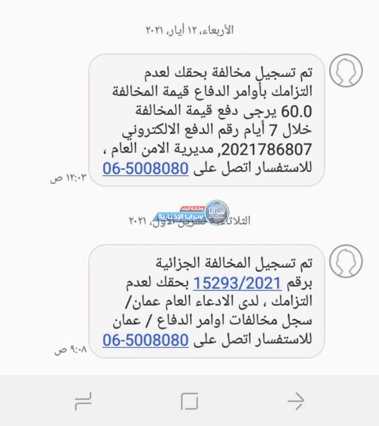 محمد مهدد بالتعميم عليه لانه عليه مخالفه عدم الالتزام بقانون الدفاع قيمتها ٦٠ دينار يعني مثل ما بحكيلي ( شغل ٣ ايام ) .