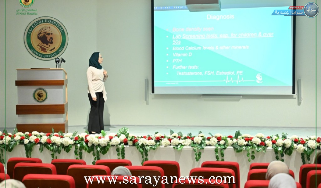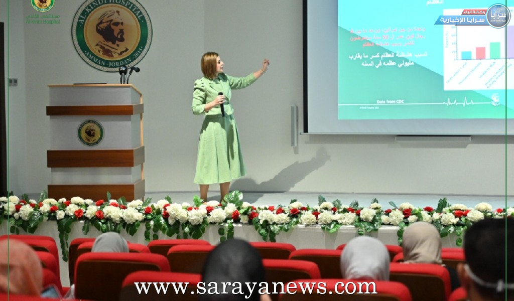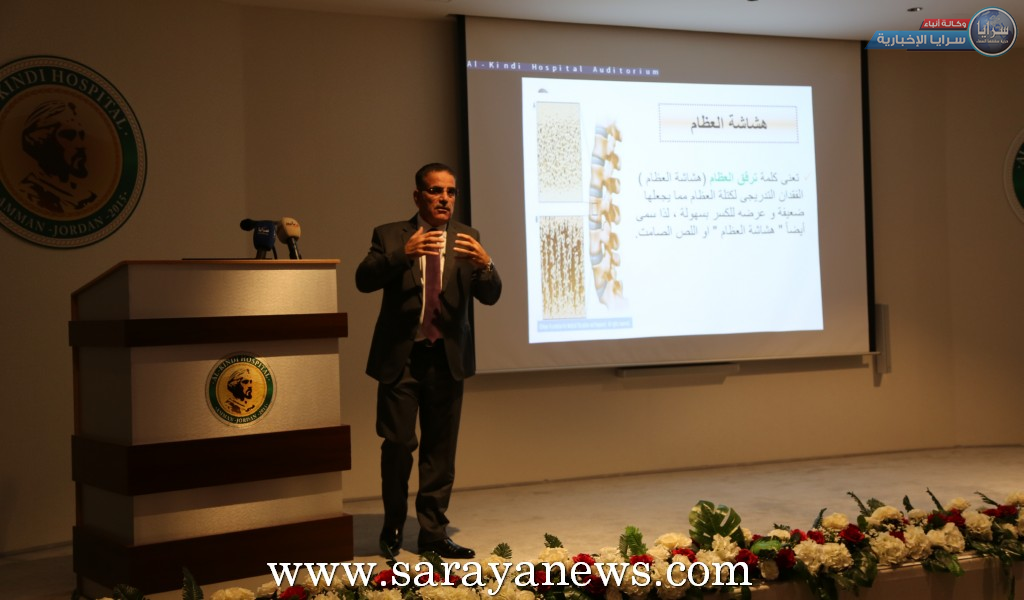 سرايا - تحت رعاية معالي الدكتور علي حياصات مدير عام مستشفى الكندي وبحضور رئيس الجمعية الاردنيه للوقاية من ترقق العظم الدكتور زياد الزعبي ورئيس مركز السكري في مستشفى الامير حمزة استشاري اول الغدد الصماء والسكري الدكتور موفق الحياري تم الاحتفال باليوم العالمي لهشاشة العظام والذي اطلقته الجمعية الوطنية لهشاشة العظام في المملكة المتحدة وبدعم من اللجنة الاوروبية للاحتفال به في العشرين من شهر تشرين الاول من كل عام للتركيز على رفع الوعي حول الوقاية والتشخيص والعلاج من هشاشة العظام