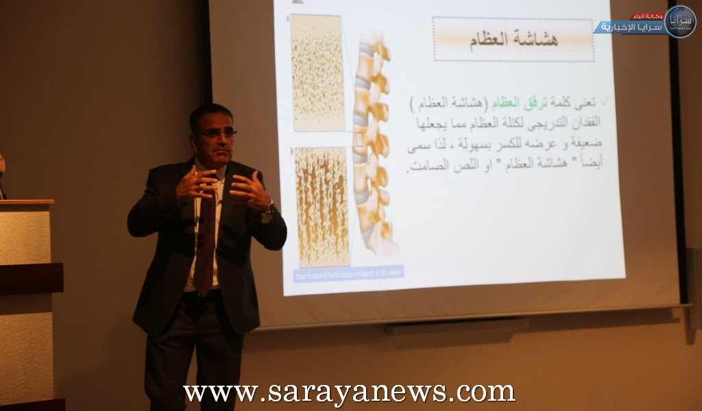 والقت فنية المختبر لينا الحياري محاضرة تطرقت فيها الى الفحوصات الاساسية المخبرية التي يمكن اجراؤها للمساعدة على معرفة عوامل الخطر التي تؤدي الى تطور مرض هشاشة العظام .
