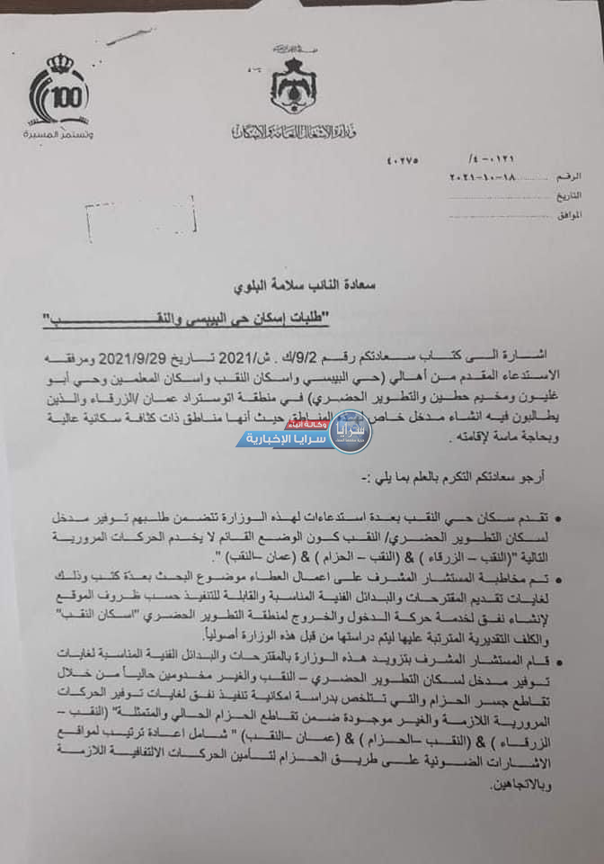 سرايا - خاص - طالب اهالي "أسكان حي البيبسي والنقب"، من خلال وثائق وصلت سرايا، اليوم الخميس، بانشاء مدخل خاص لمناطقهم والتي تشهد كثافة سكانية عالية.