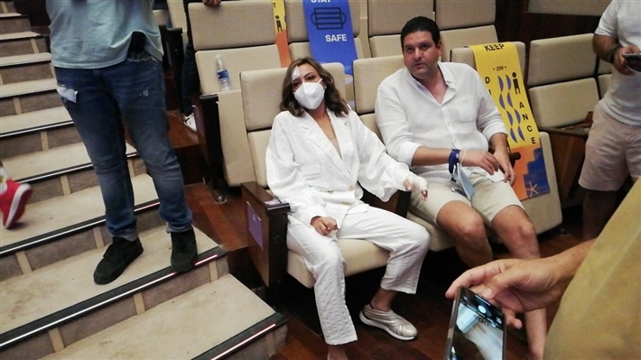 سرايا - بعد تعرضها لحادث سير، ظهرت الفنانة المصرية ​بشرى​ لأول مرة برفقة زوجها ضمن فعاليات الدورة الخامسة من مهرجان الجونة السينمائي.