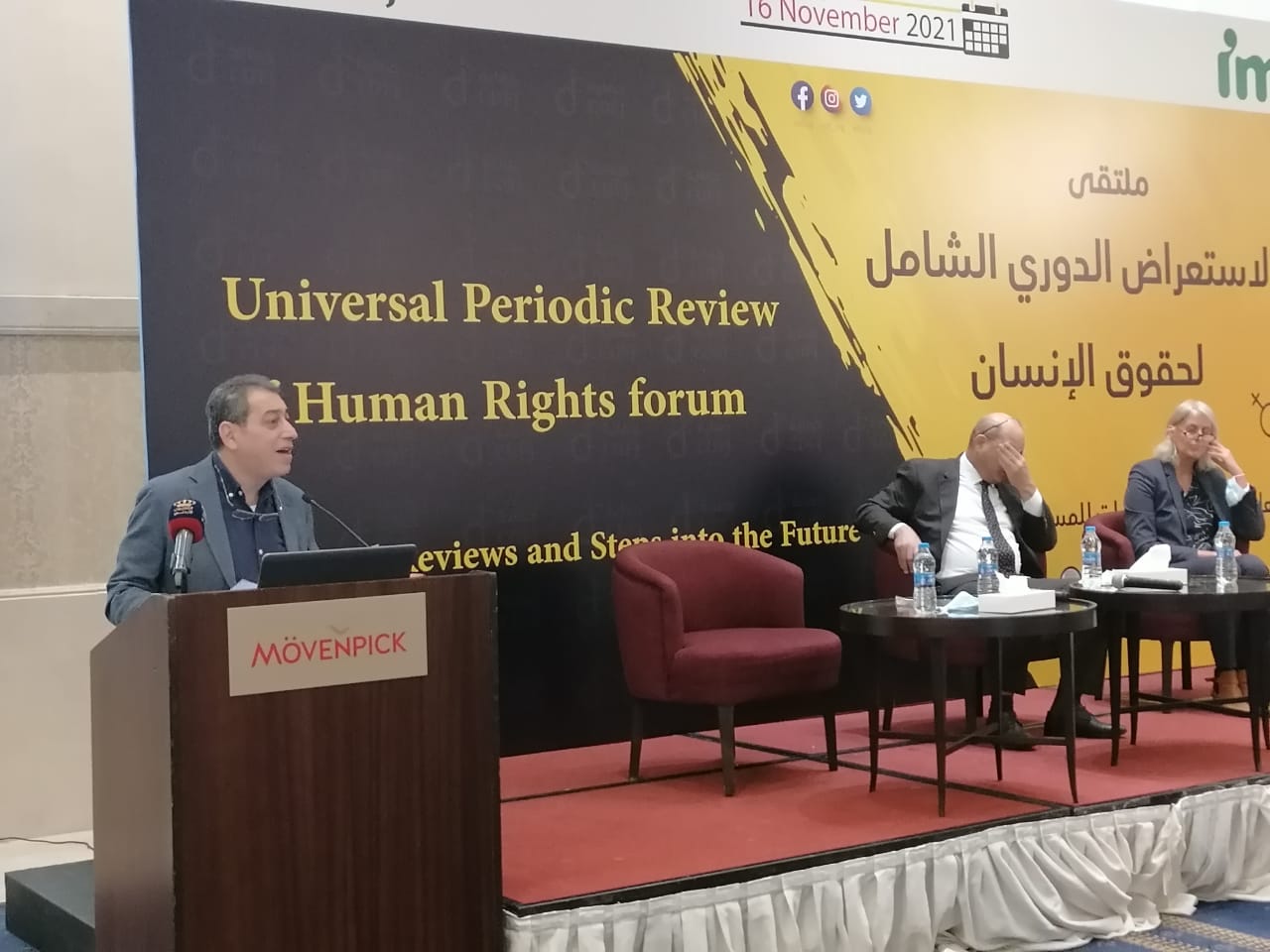 وقال مؤسس مركز حماية وحرية الصحفيين نضال منصور، في كلمته الافتتاحية، إن الملتقى يسعى إلى تحرك عاجل لبناء تفاهمات على آلية إنفاذ توصيات الاستعراض الدوري الشامل، والاتفاق على خطة عمل مشتركة بين الحكومة والمؤسسات الوطنية والمجتمع المدني في سياق التعامل مع الاستعراض الدوري الشامل القادم في عام 2023، منوها إلى أن الوقت ينفذ بسرعة، وما لم نملك الإرادة الحاسمة فإننا سنواجه نفس الإخفاقات السابقة.