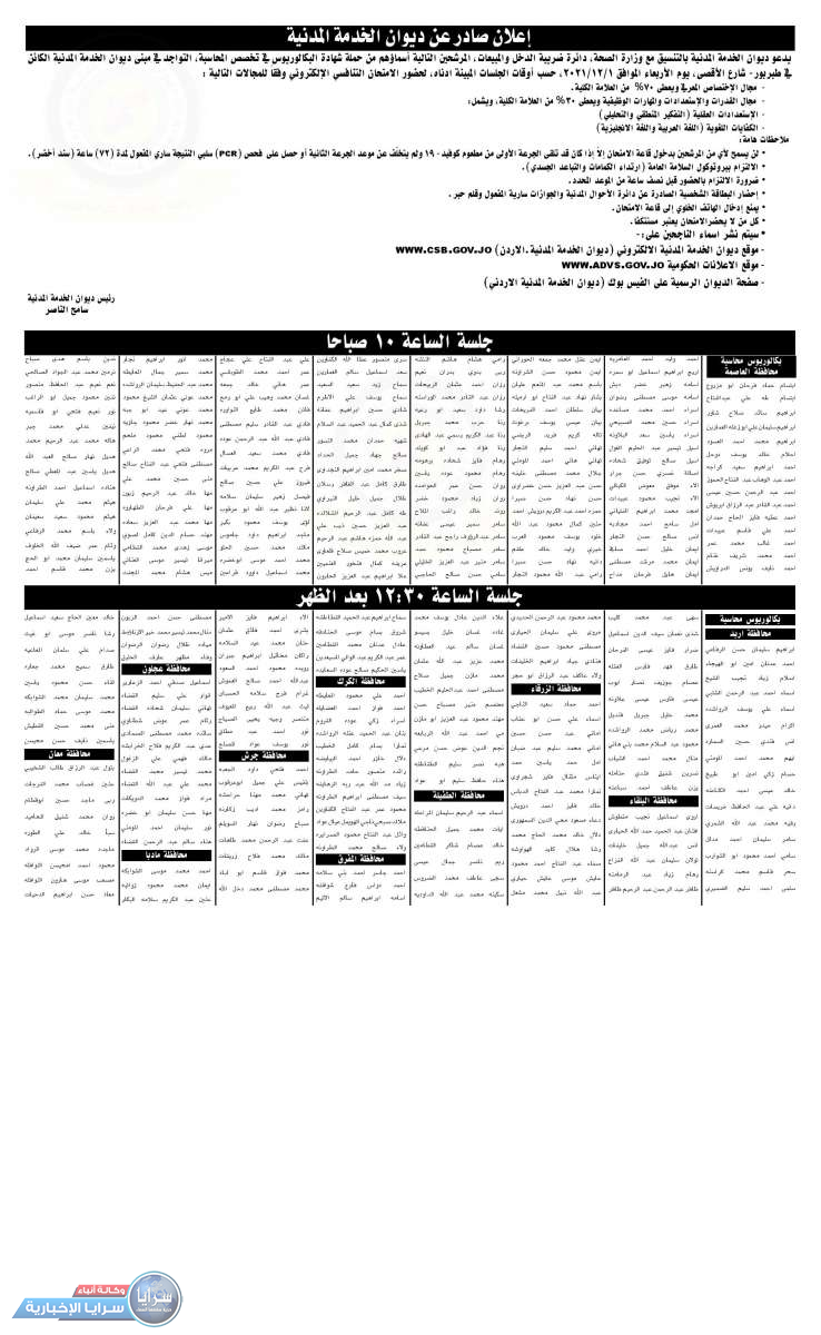 سرايا - دعا ديوان الخدمة المدنية بالتنسيق مع وزارة الصحة ودائرة ضريبة الدخل والمبيعات، مرشحين من حملة شهادة البكالوريوس في تخصص المحاسبة، لحضور الامتحان التنافسي يوم الأربعاء المقبل الموافق 1/12/2021.