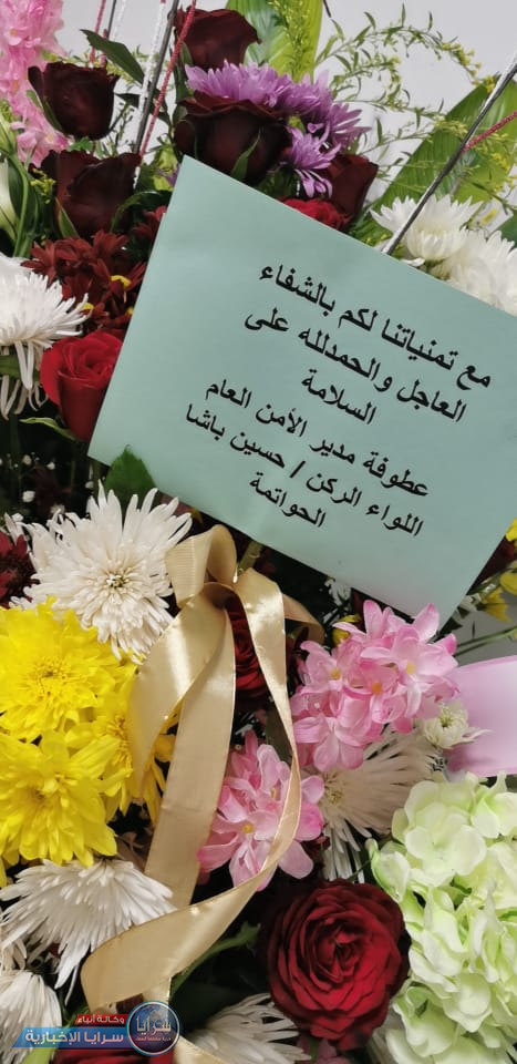 و أرسل اللواء الحواتمة باقة من الورود للمستشفى الميداني التي يرقد على أسرتها الدكتور الطراونة، عبر إدارة العلاقات العامة في مديرية الأمن العام.