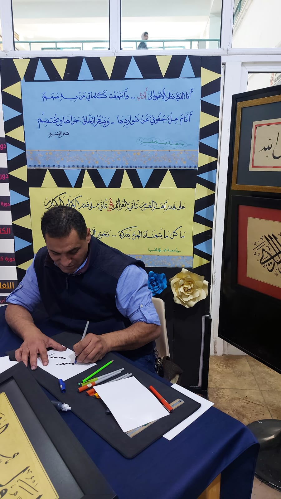 وقد كان للخط العربي بفنونه المتنوعة حضور مميز بين الجمهور إذ استضاف المركز في زاويته الخطّاط علي محمود الدبش ليعقد ورشة تعريفية فاعلة للخط العربي، وقد عرض عددا من لوحاته الّتي كانت أشبه بالرّسم بالكلمات، بما عكست روح الهندسة الجمالية التي تتّسم بها لغة الضّاد. وقد رحّب الخطاط بضيوف الزّاوية الّذين رغبوا برسم أسمائهم بخطوط بديعة.