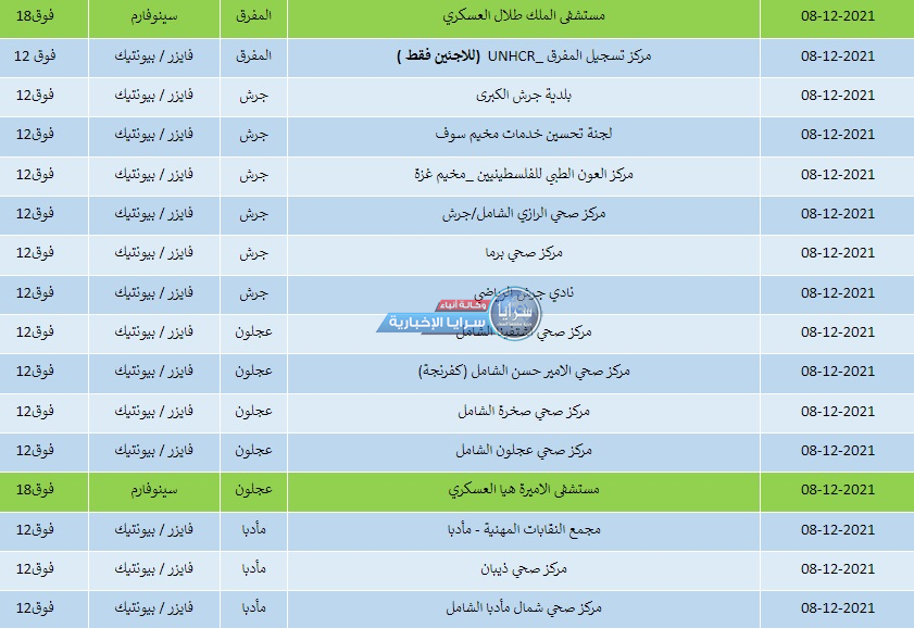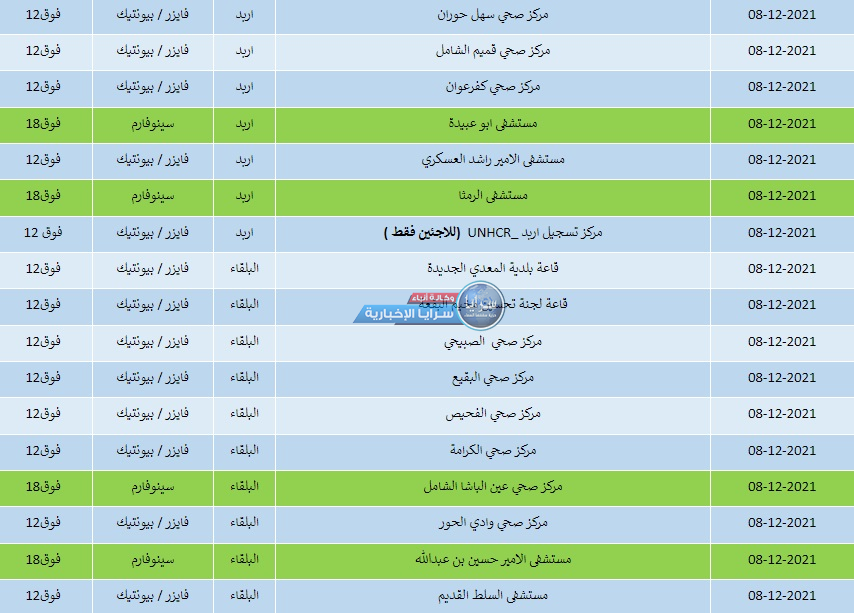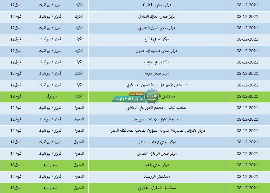 سرايا - أعلنت وزارة الصحة مراكز التطعيم المخصصة لتقديم جرعات كورونا جميعها ليوم الأربعاء. وتالياً أسماء المراكز، ونوع المطعوم والفئة المستهدفة وفق ما نشرت الوزارة: