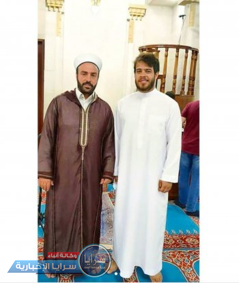 وظهر أدهم في الصورة برفقة شيخ أردني من داخل أحد المساجد في الأردن، وهو يرتدي دشداشة بيضاء.