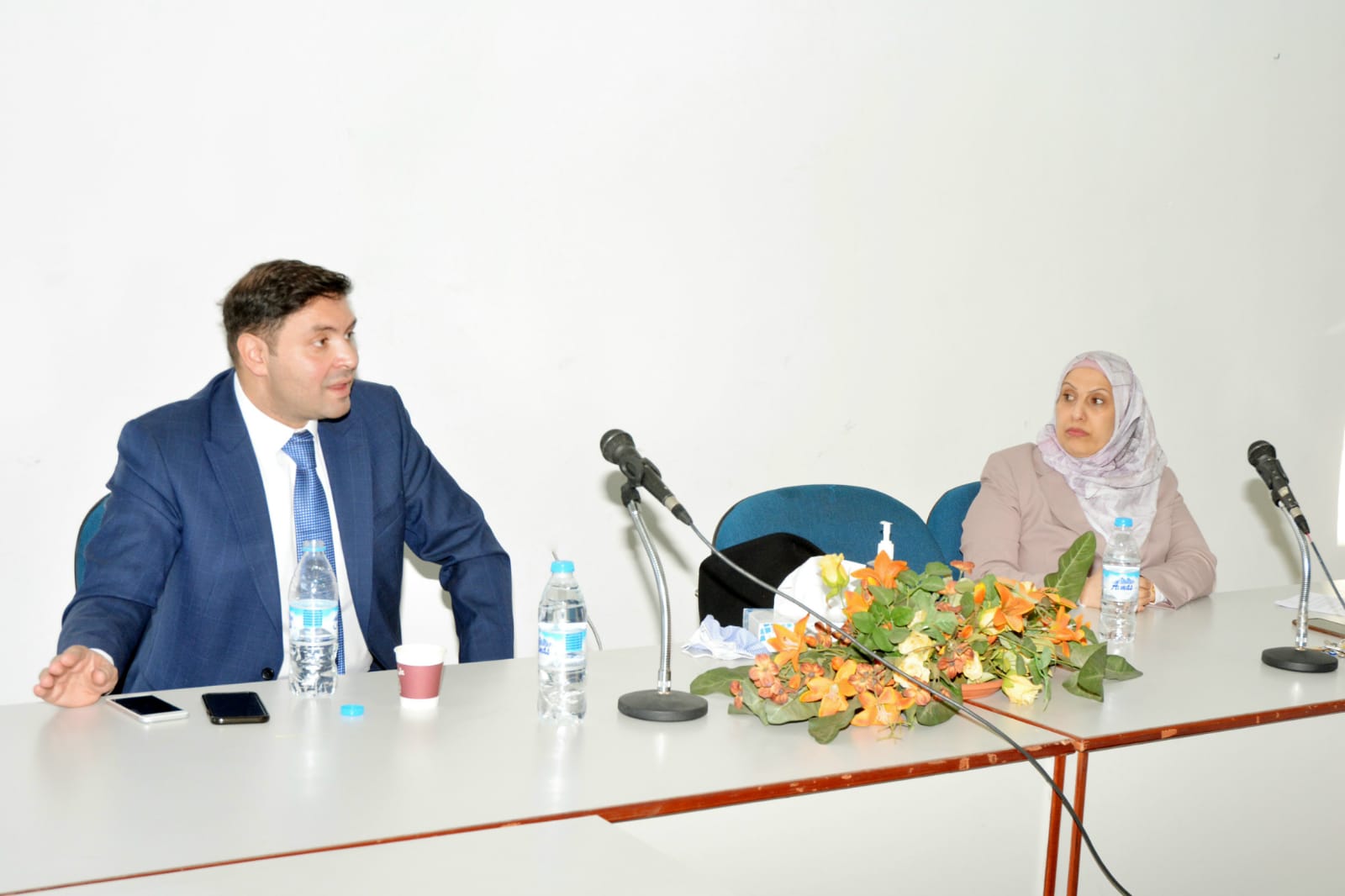 وفي نهاية الندوة تفاعل أساتذة القسم والطلبة مع الضيف بطرح العديد من الأسئلة والتي نوقشت معهم باهتمام .