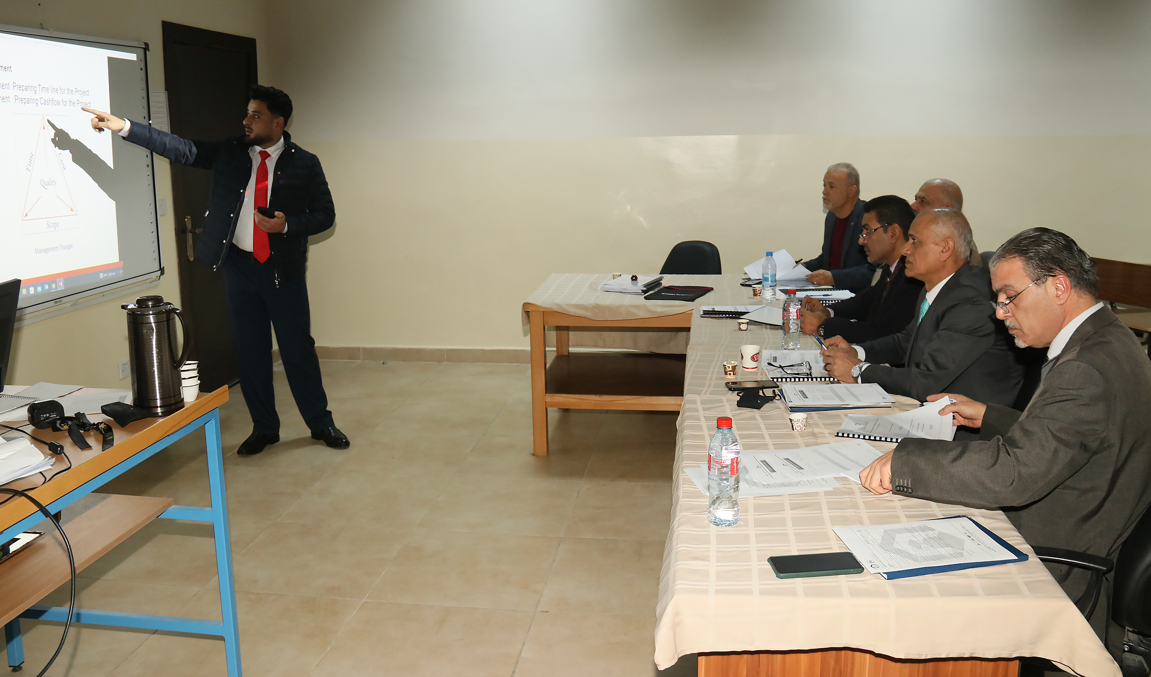 مشروع إدارة صيانة وإعادة تأهيل طريق شارع الأردن حيث يقدم المشروع جدولة زمنية وتحليل لكلفة صيانة طريق شارع الاردن باستخدام أحد برمجيات تخطيط المشاريع وذلك بإشراف المهندس نبيل الفيوم،.