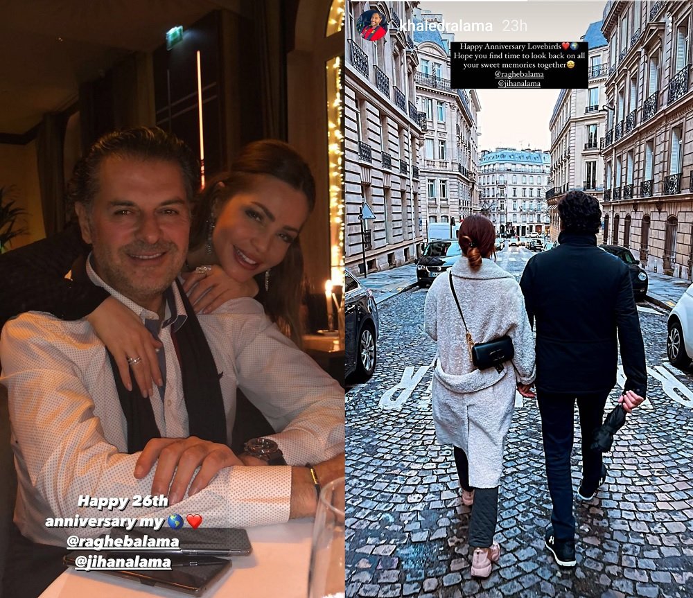 أما لؤي علامة فنشر كذلك عبر خاصية القصص القصيرة على انستجرام، صورة رومانسية لوالديه كذلك، وعلق عليها قائلًا: "الذكرى الـ26 السعيدة لأحبائي"، متمنيًا لهما مزيد من السعادة والتوفيق
