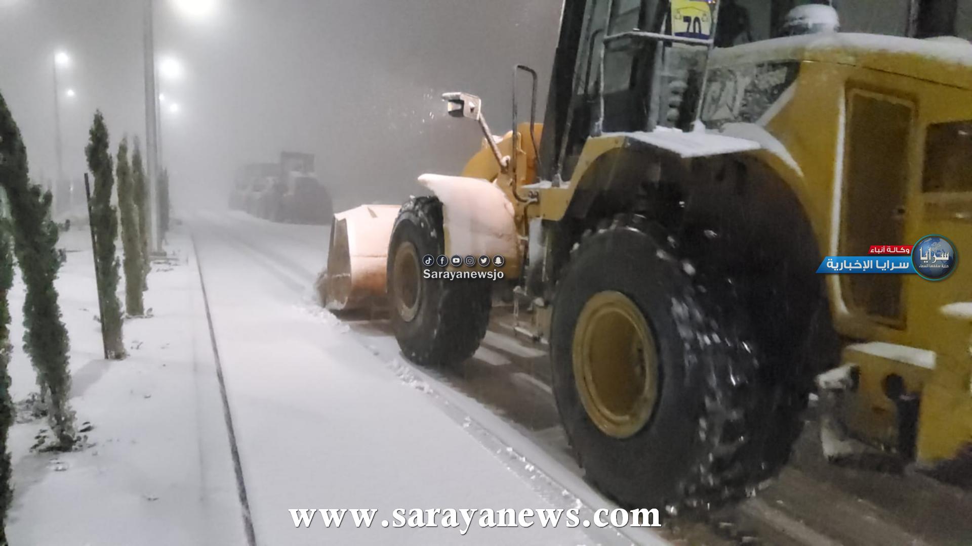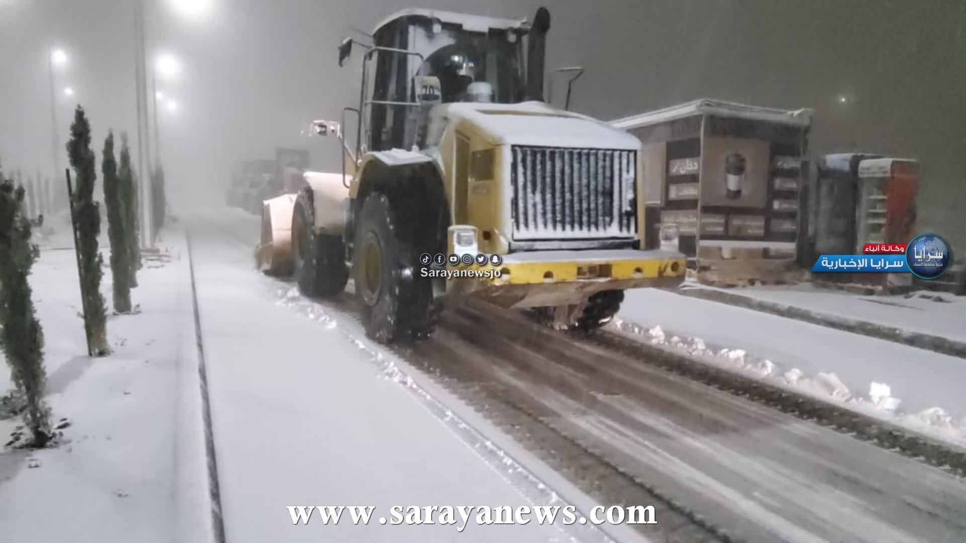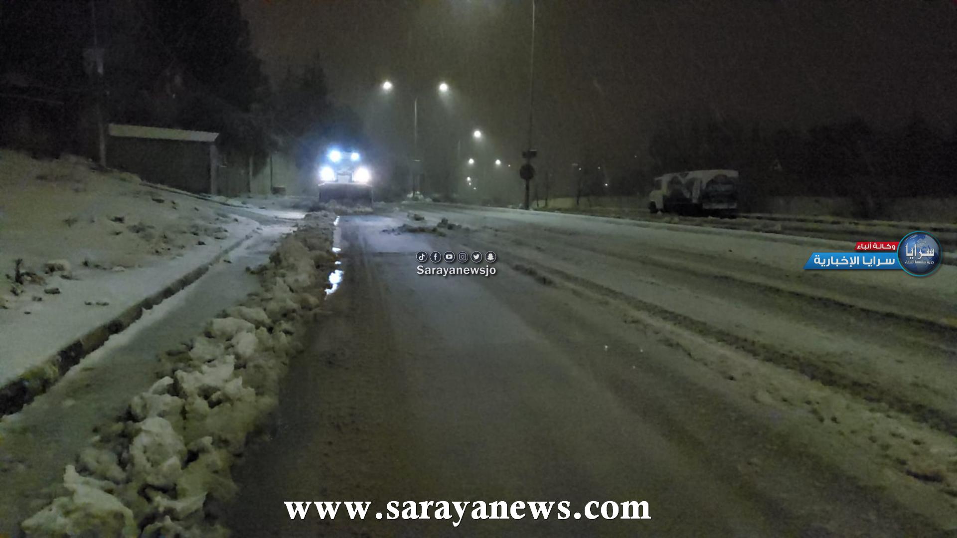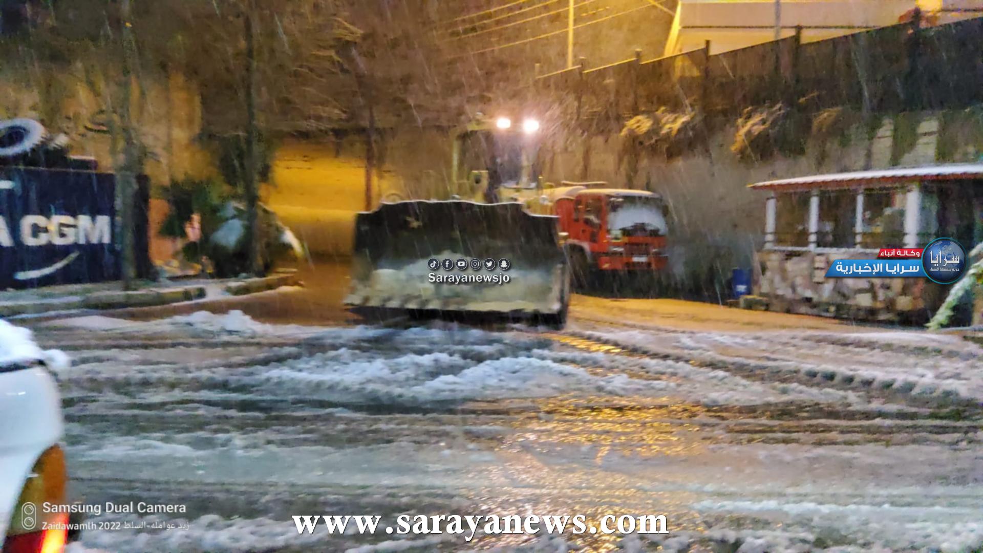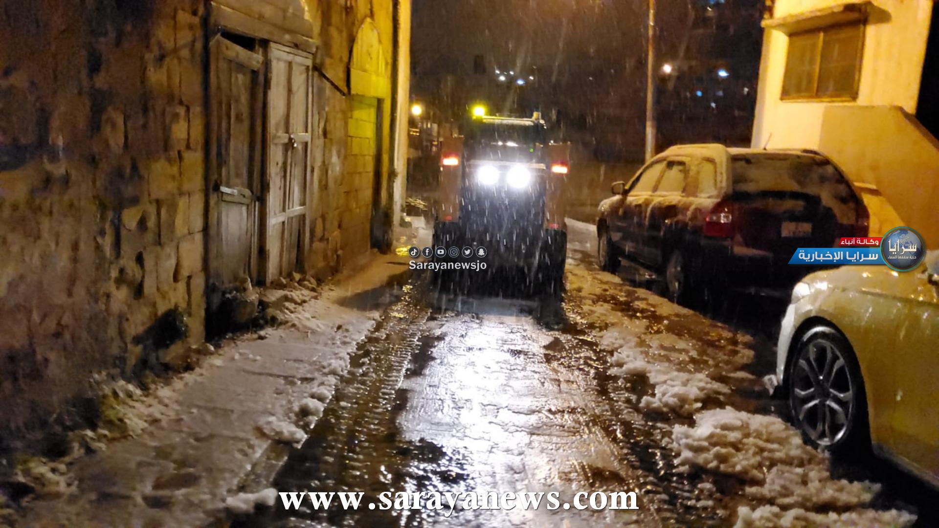 سرايا - باشرت كوادر بلدية السلط الكبرى و منذ بداية تأثير المنخفض القطبي على مدينة السلط الكبرى و تساقط الثلوج وتراكمها في بعض المناطق.