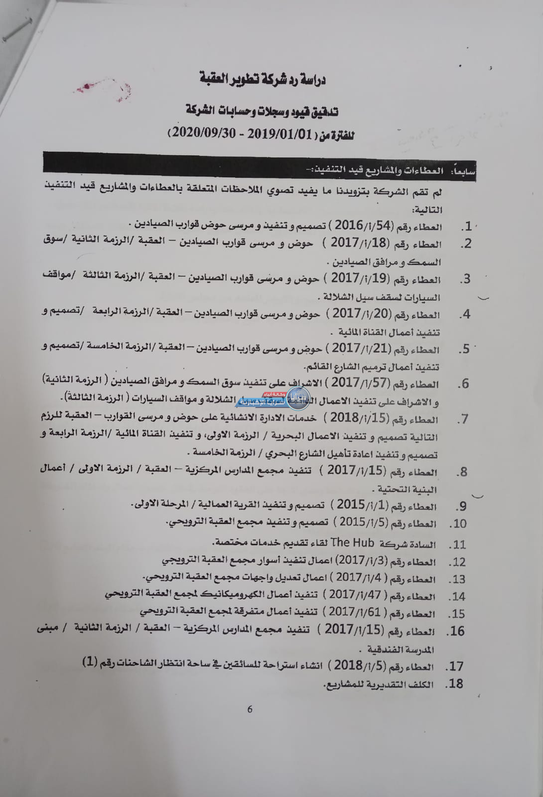 وكشف التقرير السنوي لديوان المحاسبة الأخير ، عدم تزويد شركة تطوير العقبة ما يفيد تصويب الملاحظات المتعلقة بنحو 17 عطاء ومشاريع قيد التنفيذ حينها ، إضافة إلى فروقات ما بين الكلف التقديرية والتنفيذية لمشاريع وقيمة الإحالة.