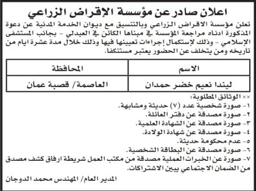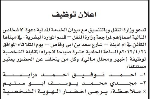 سرايا - دعا ديوان الخدمة المدنية بالتعاون مع مختلف الوزارات والمؤسسات الحكومية، التالية اسماؤهم لاجراء المقابلات الشخصية وعقد الامتحان التنافسي لغايات التعيين.