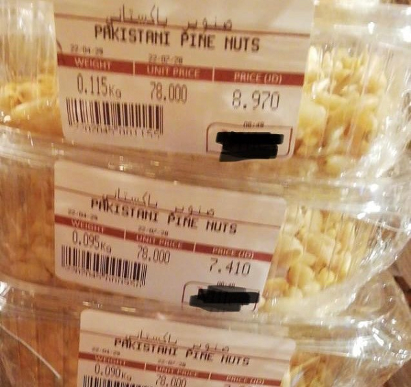 وبحسب صورة متداولة وصل سعر الكيلو غرام الواحد الى 78 دينارا في احدى المولات ، ويعود سبب الارتفاع الى قلة المعروض و قلة زراعة اشجار الصنوبر في المملكة وفقا لمزارعين .