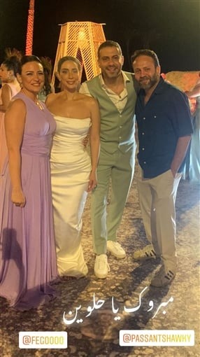 وحرص عدد من نجوم الفن على حضور حفل الزفاف، منهم: هنادي مهنا، وحمزة العيلي، وإيمي سالم، وريهام عبد الغفور، ومحمد جمعة، ورشا مهدي، وأحمد حاتم.