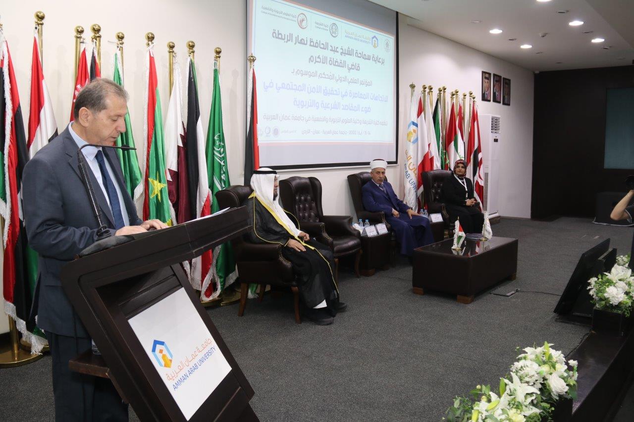 وافتتح راعي الحفل فعاليات المؤتمر بحضور رئيس جامعة عمان العربية الأستاذ الدكتور محمد الوديان والذي جاء بتنظيم مشترك بين كلية الشريعة وكلية العلوم التربوية والنفسية في جامعة عمان العربية.