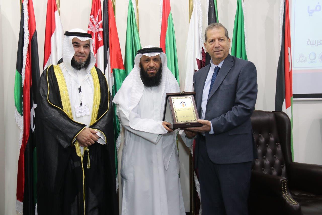وفي نهاية الحفل الذي أداره الدكتور مراد شكيب، قدم رئيس الجامعة الأستاذ الدكتور محمد الوديان درع الجامعة لراعي الحفل ولداعمي المؤتمر من دولة الكويت الشقيقة الدكتور خالد السلطان والمهندس الشيخ داود العسعوسي تقديراً لدعمهم المتواصل.