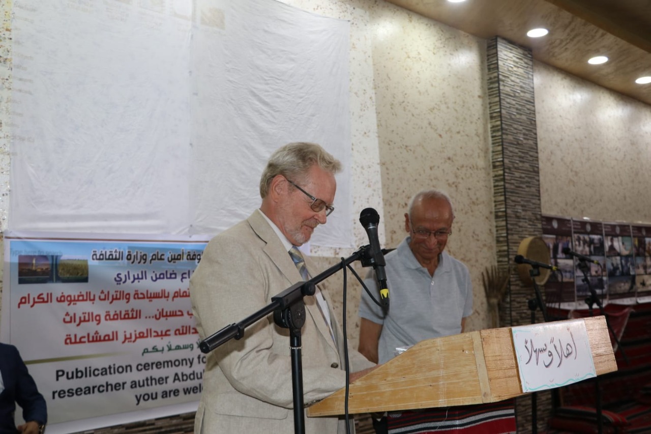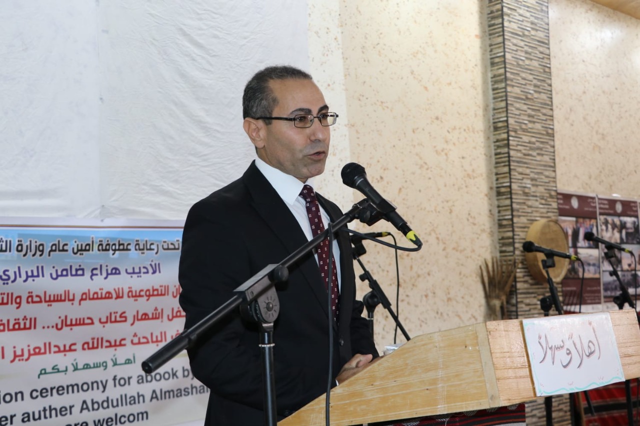 ورعى هذه الفعالية أمين عام وزارة الثقافة د.هزاع البراري الذي اعرب بدوره عن أهمية تقديم هكذا أعمال تراثية تترك الاثر الطيب دائماً، معتبراً أن هذا العمل الثقافي يعتبر نادراً من نوعه ويفتح افاقًا جديدة وخارطة طريق لإنتاج أعمال أدبية مماثلة للترويج السياحي، لطالما حسبان غير موجودة على خارطة السياحة بكل أسف.