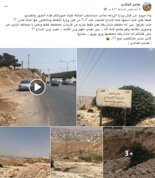 ويذكر أن الزميل هاشم الخالدي قد أثار قضية مشروع غابة الإبداع عبر صفحته على موقع التواصل الاجتماعي فيسبوك.