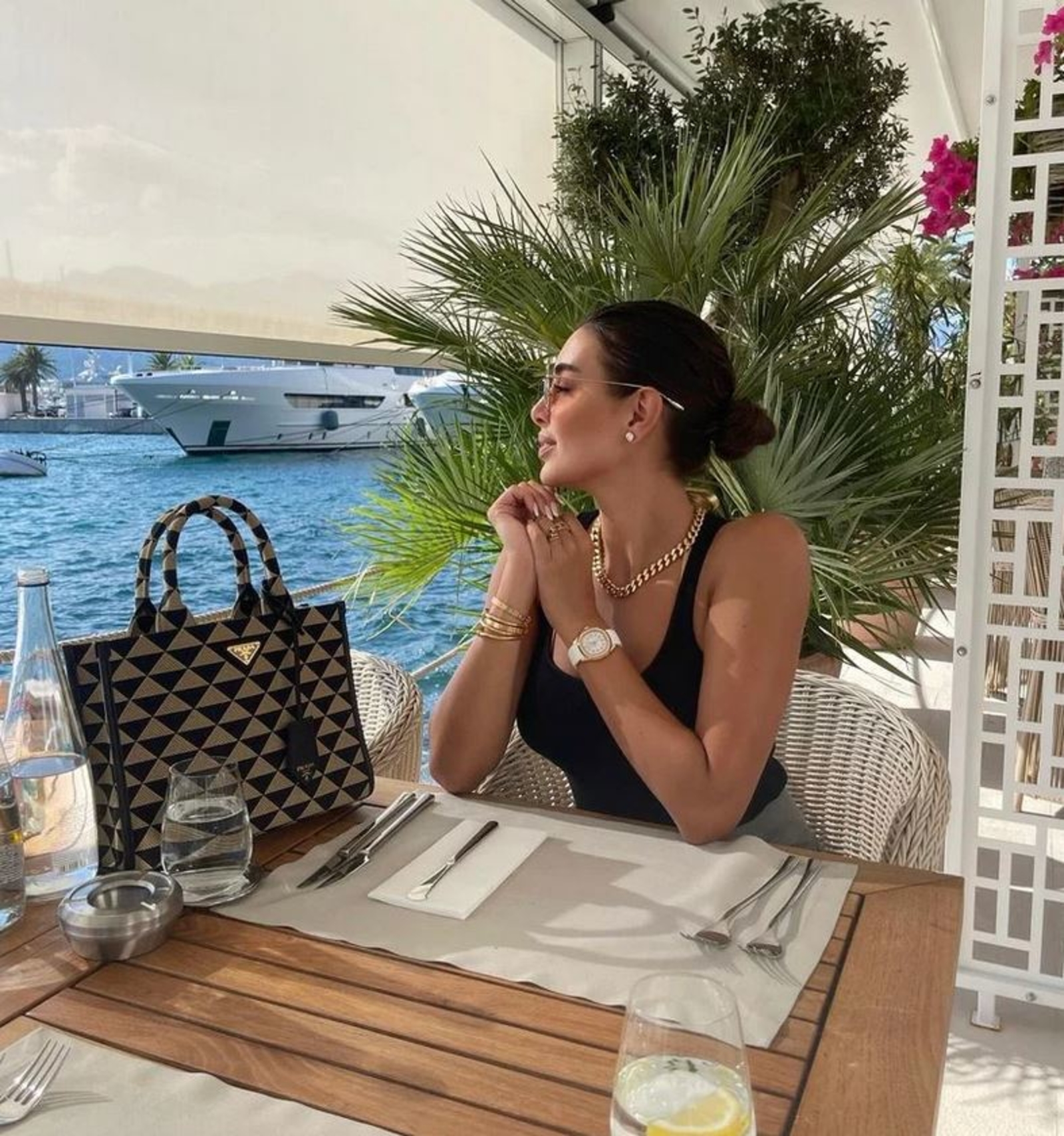 وفي احدى اطلالاتها التي نشرت صور فيها على صفحتها الخاصة على موقع التواصل الاجتماعي اختارت حقيبة يد متوسطة الحجم تتألف من اللونين البيج و الأسود، وقد حملت توقيع دار الأزياء العالمية Prada، ويبلغ سعرها حسب الموقع الرسمي للماركة 13500 دولار أمريكي، أي ما يقارب من 68 ألف جنيه مصري.