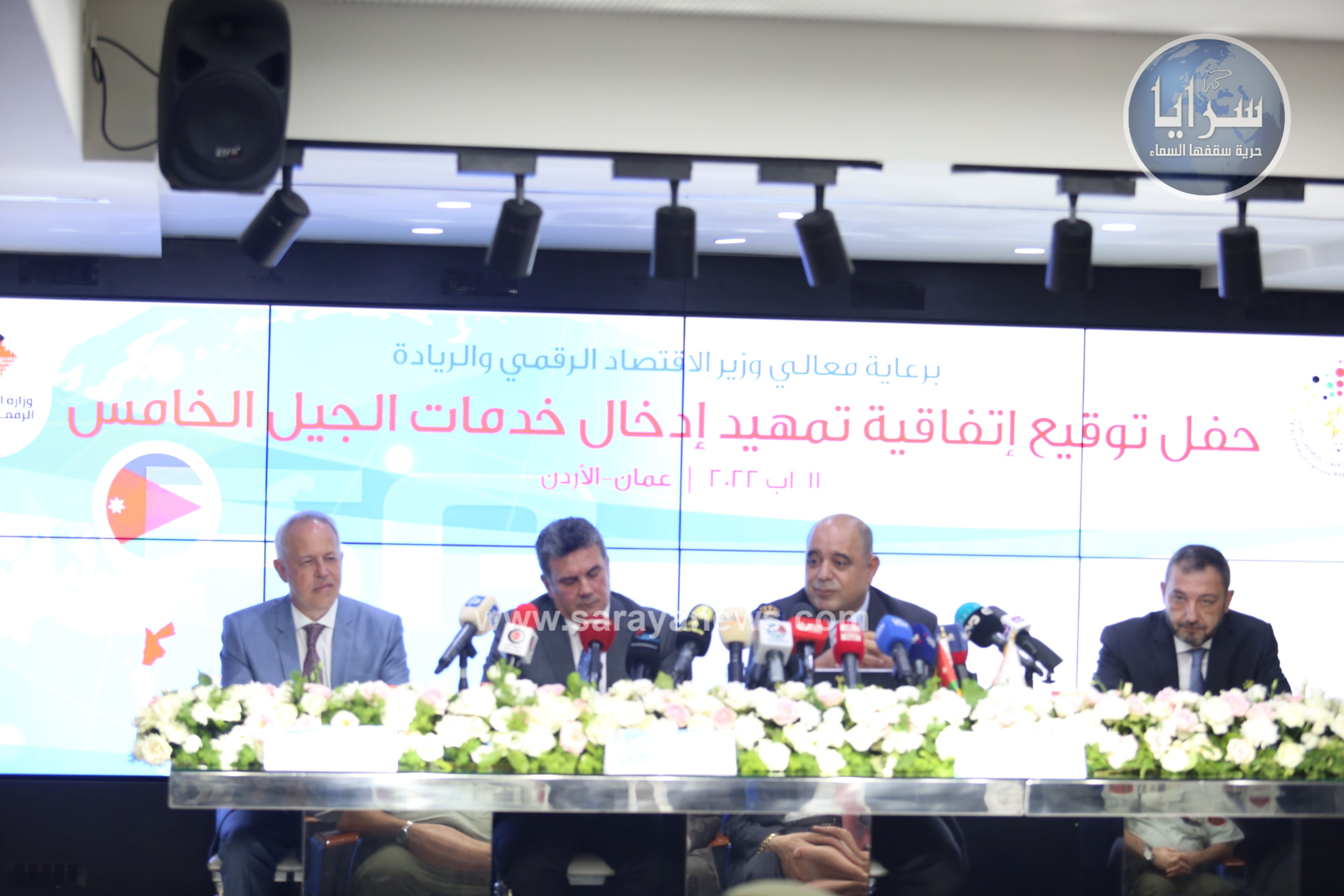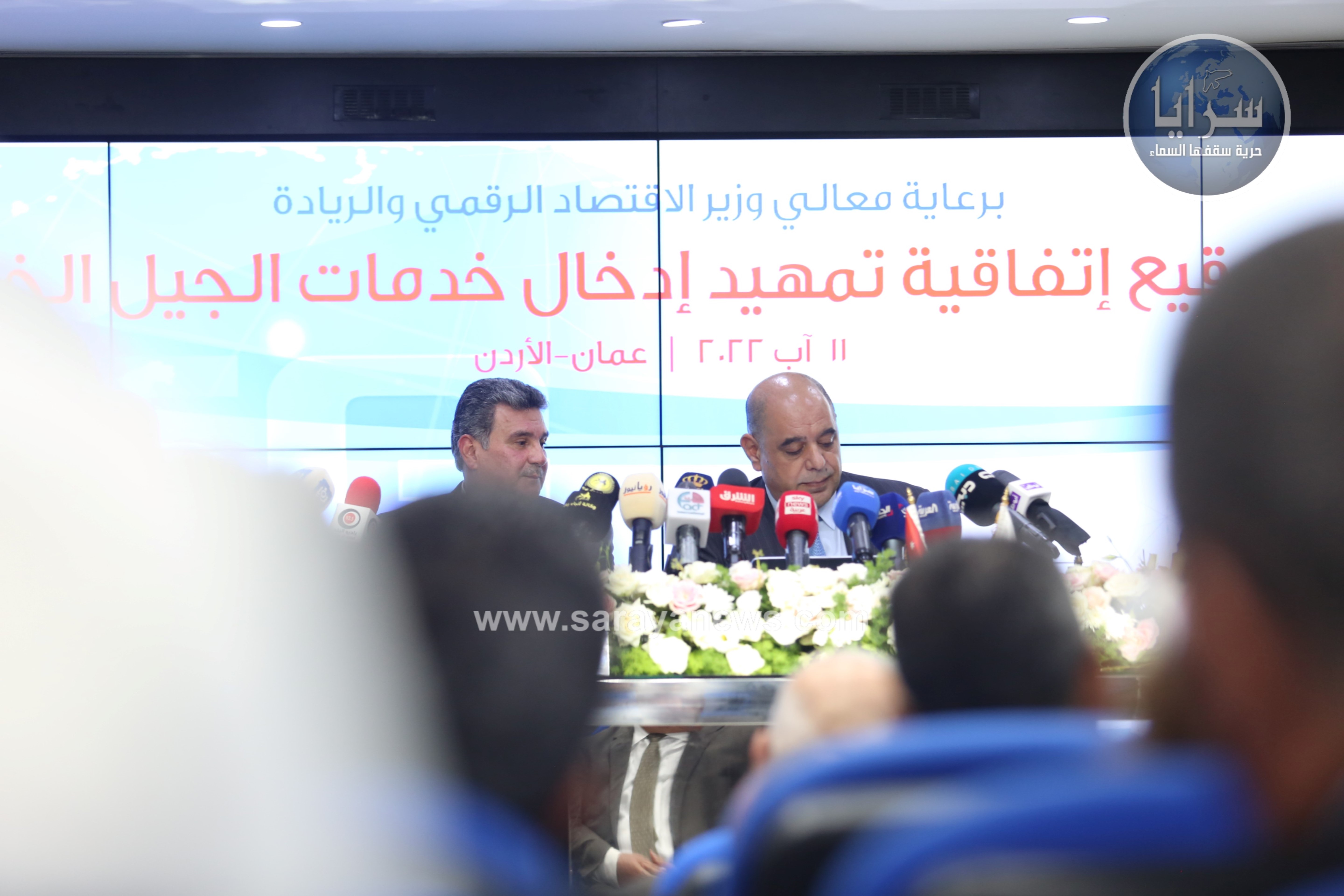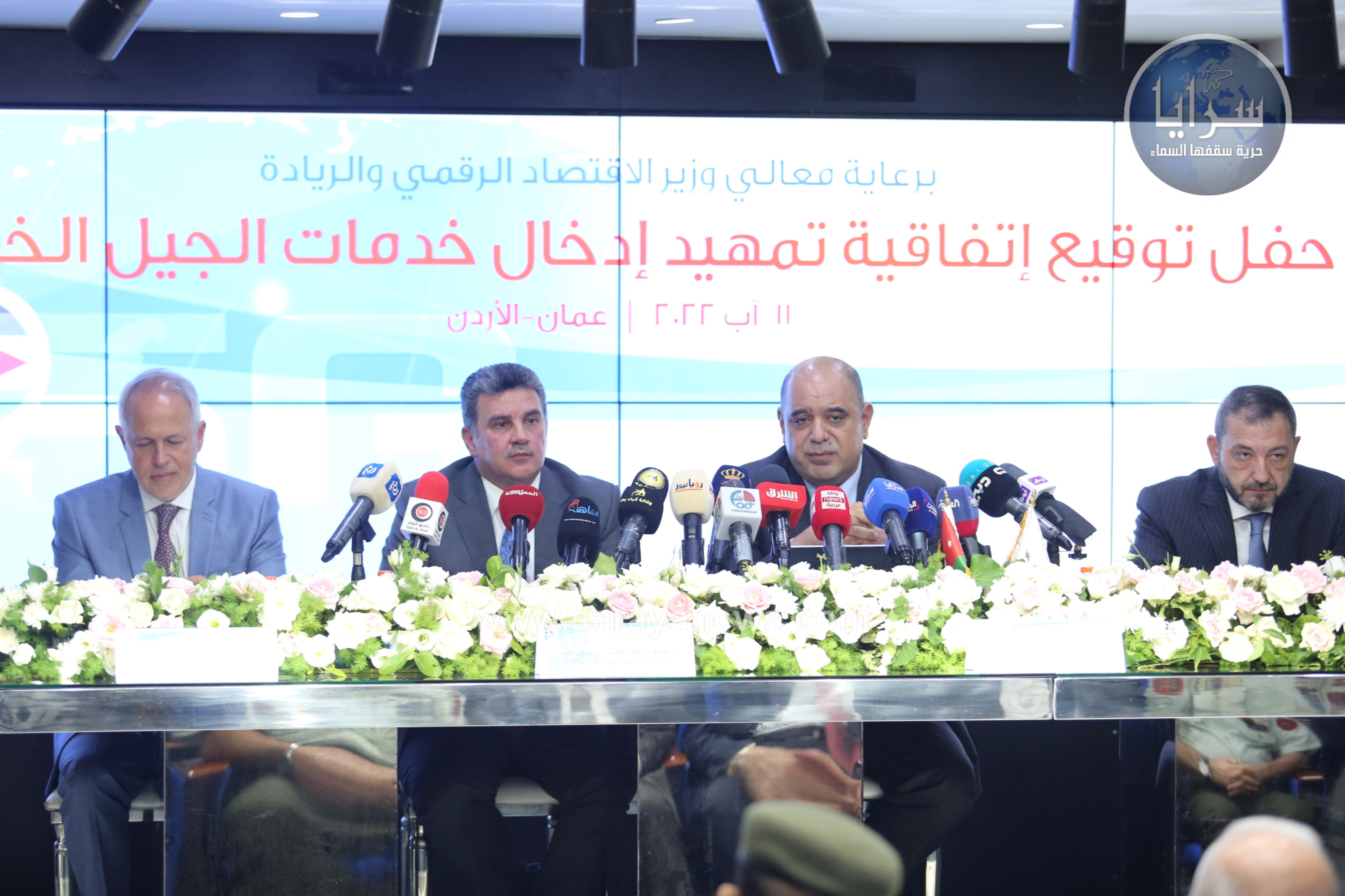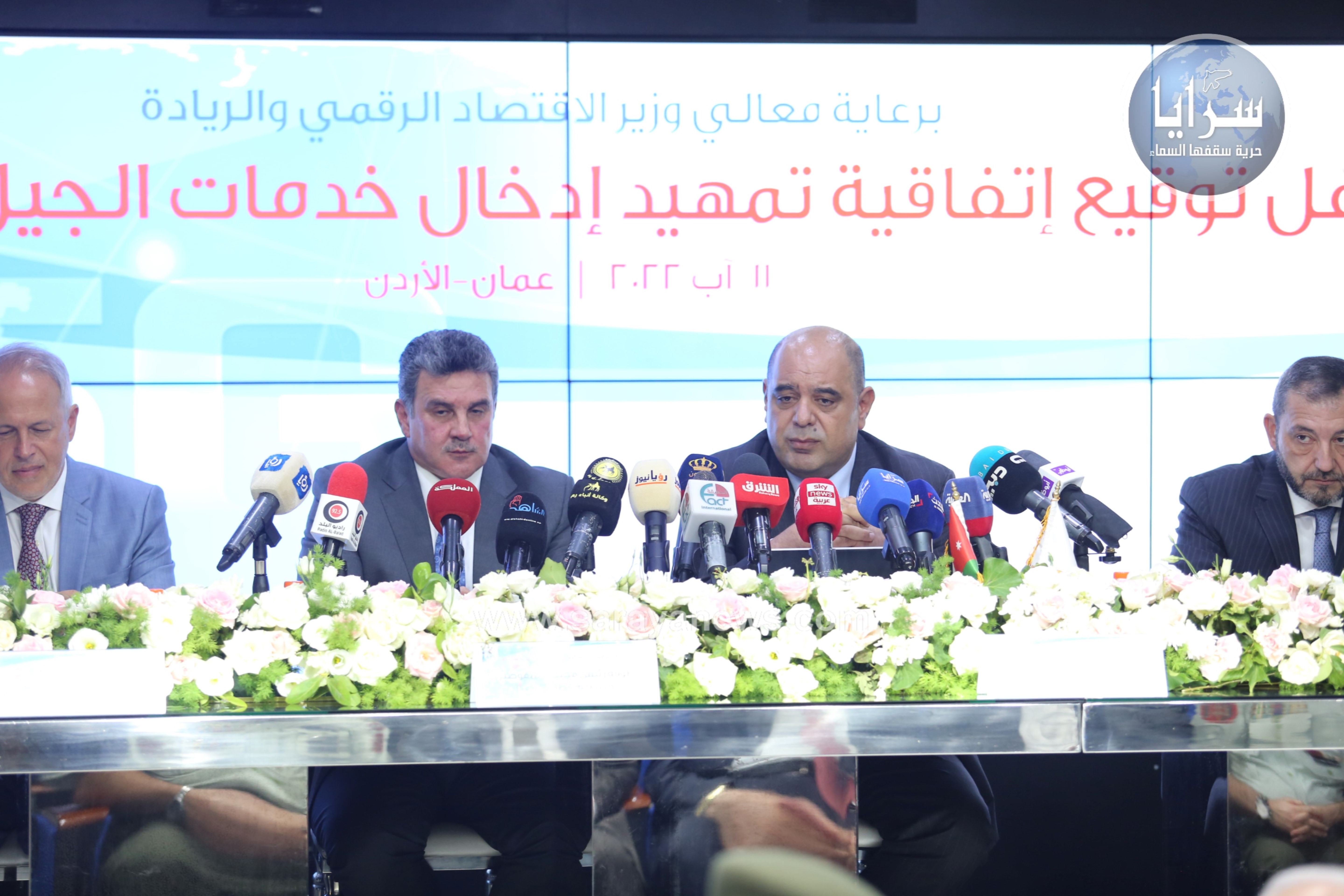 وقال الهناندة، خلال مؤتمر صحفي، إن الإعلان عن اتفاقية تُمهد لإدخال خدمات الجيل الخامس إلى الأردن، هو اجتماع "تاريخي مع قطاع الاتصالات المساهم بالنمو الاقتصادي".