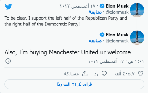 وكانت بعض الجماهير طالبت ماسك بشراء مانشستر يونايتد بدلا من "تويتر".