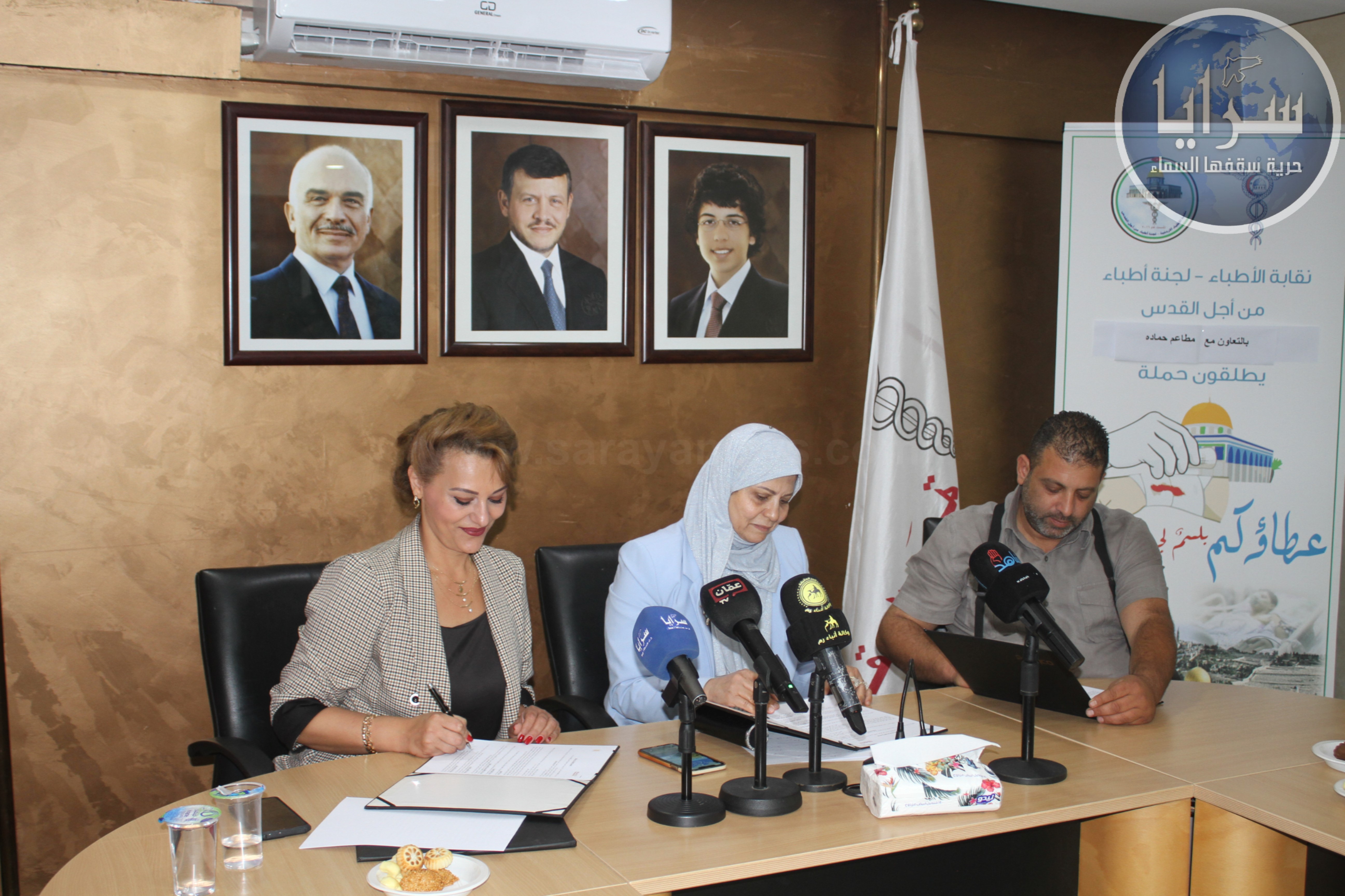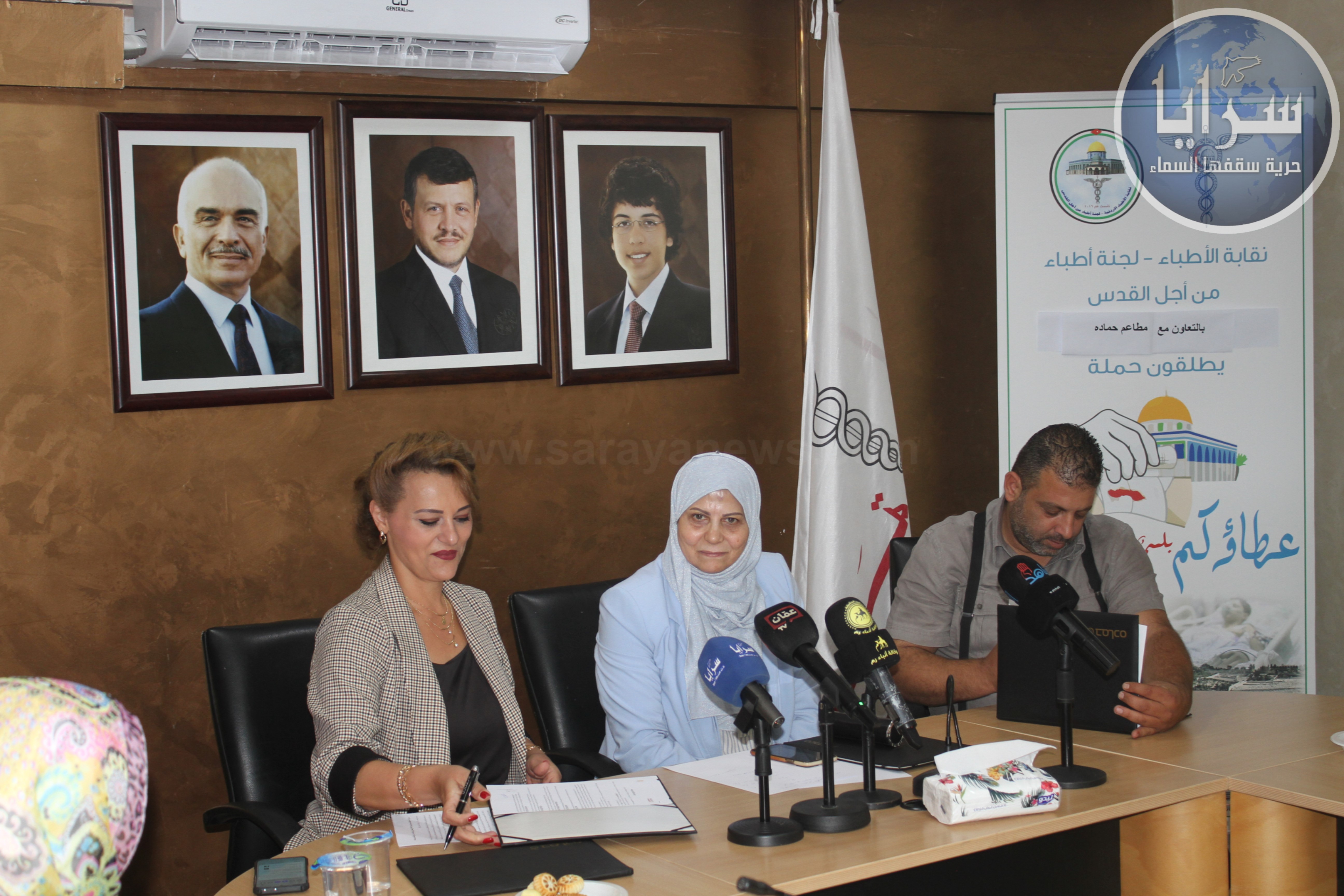 سرايا - تصوير محمد الشرقاوي - ضمن حفل توقيع أقيم في نقابة الأطباء الأردنية انطلقت مبادرة "معاً عطاؤنا بلسم لجراحهم" والتي جاءت ضمن شراكة استراتيجية بين لجنة أطباء من أجل القدس ومجموعة مطاعم حماده وبالتعاون مع شركة واو للترفيه، وتهدف هذه المبادرة إلى تقديم الدعم المادي لأهالينا المرضى في القدس الشريف من جانب، بالإضافة إلى رفع الوعي بتاريخنا وإرثنا العربي الإسلامي، بالإضافة إلى تعزيز المعرفة بالقيمة الغذائية لوجبات الموروث الشعبي في مجموعة مطاعم حماده. وقد جاءت هذه الشراكة بناءَ على تلاقي الأهداف التي ترتكز على أهمية المحافظة على هويتنا وإرثنا الشعبي والتاريخي وتقديم الدعم المادي والمعنوي والتوعوي، حيث توزعت الأدوار على شركاء المبادرة بشكل تكاملي يسهم في تعظيم الأثر الإيجابي في العديد من الجوانب الحياتية سواء الصحية أو الثقافية أو السلوكية.