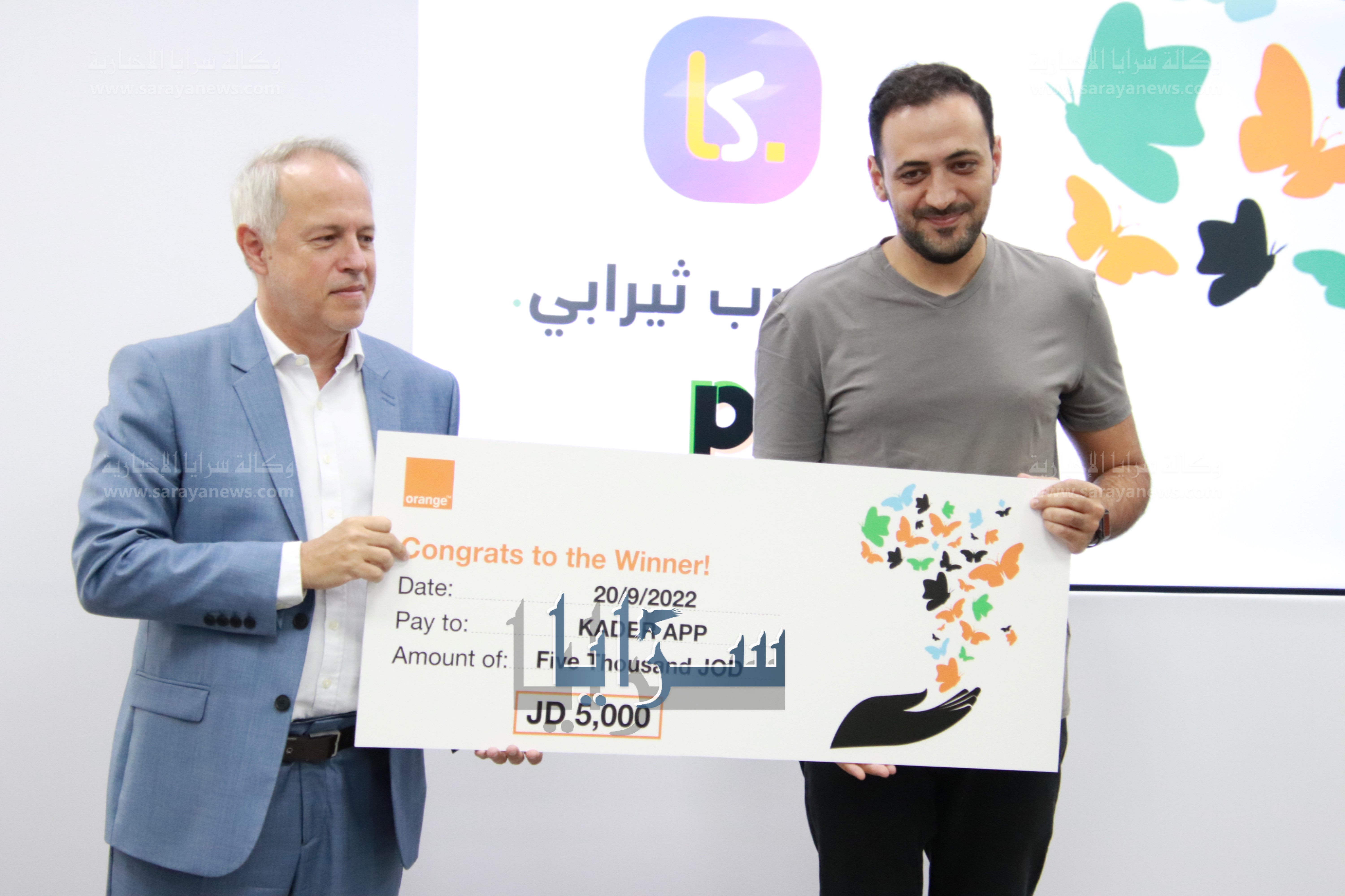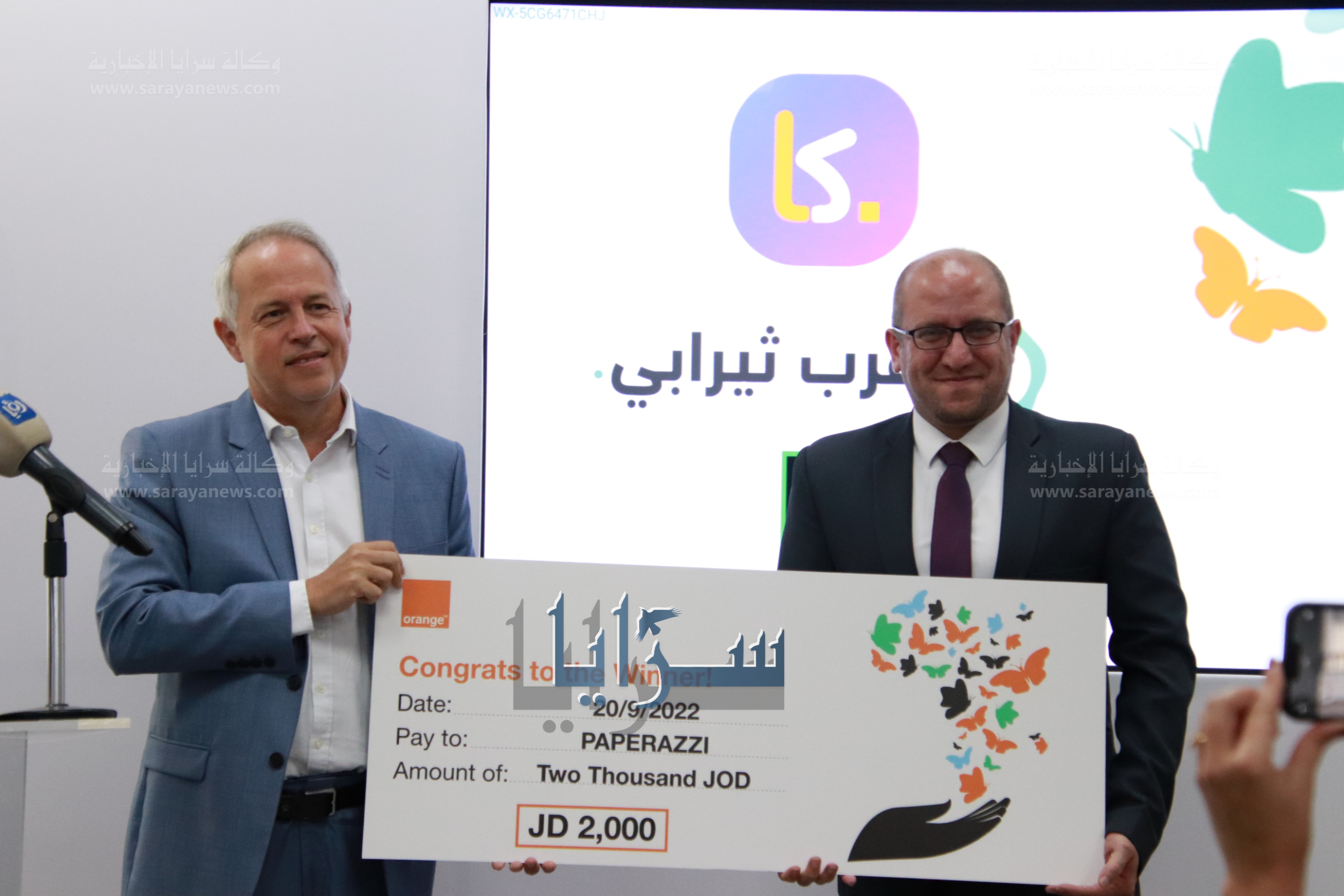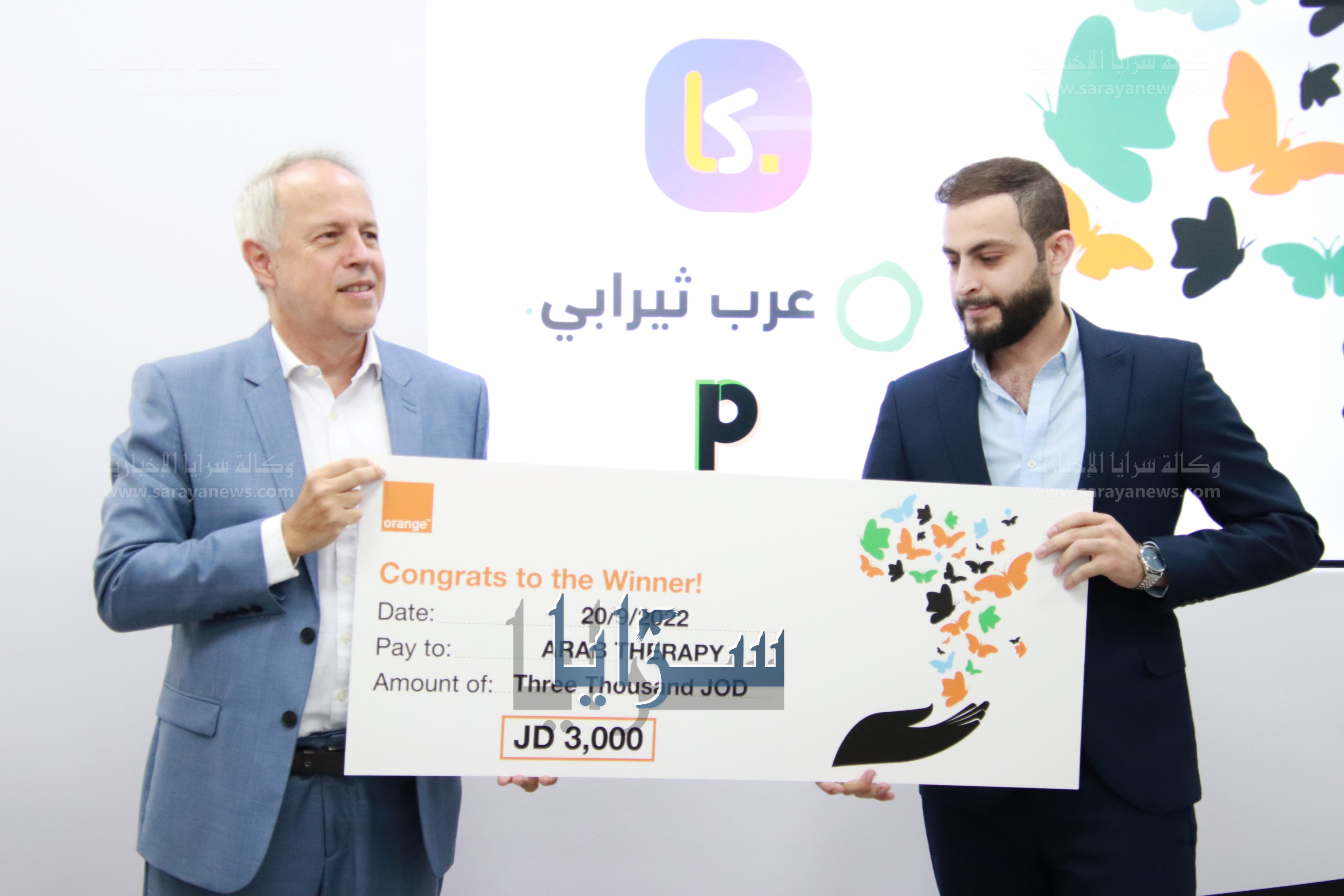 سرايا - تصوير محمد العنانزة - تواصل أورنج الأردن دعم المشاريع الريادية التي تسهم في تعزيز النمو الاقتصادي والمجتمعي، حيث أعلنت مؤخراً عن الفائزين الثلاثة بالنسخة المحلية السادسة من جائزة أورنج لمشاريع التنمية المجتمعية (OSVP 2022) والتي تهدف لدعم المشاريع التي تسخّر التكنولوجيا في مختلف المجالات مثل الصحة والزراعة والتعليم والطاقة والتجارة والصناعة، بالإضافة إلى تسليط الضوء على أصحاب الإبداعات المميزة وتكريمهم.