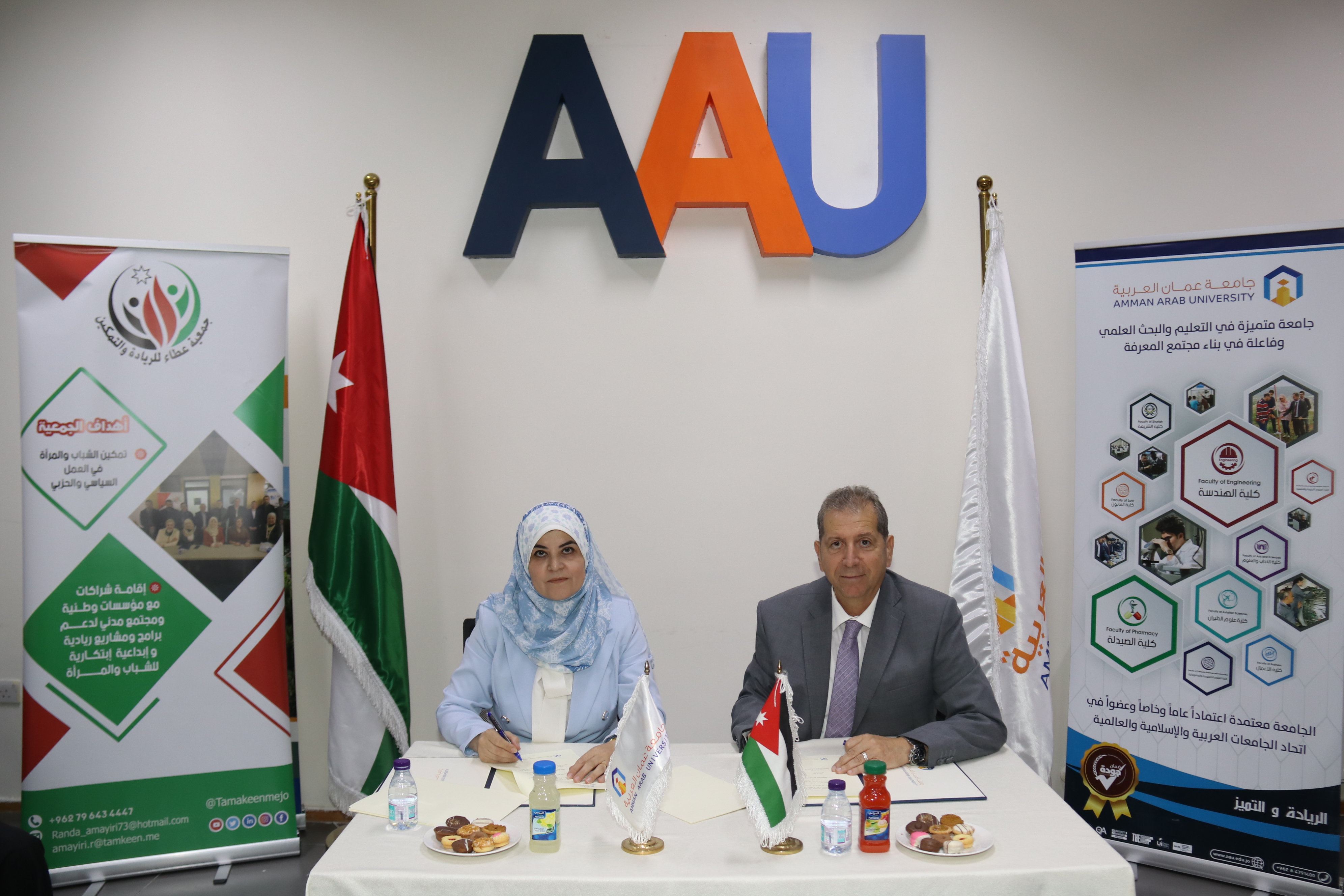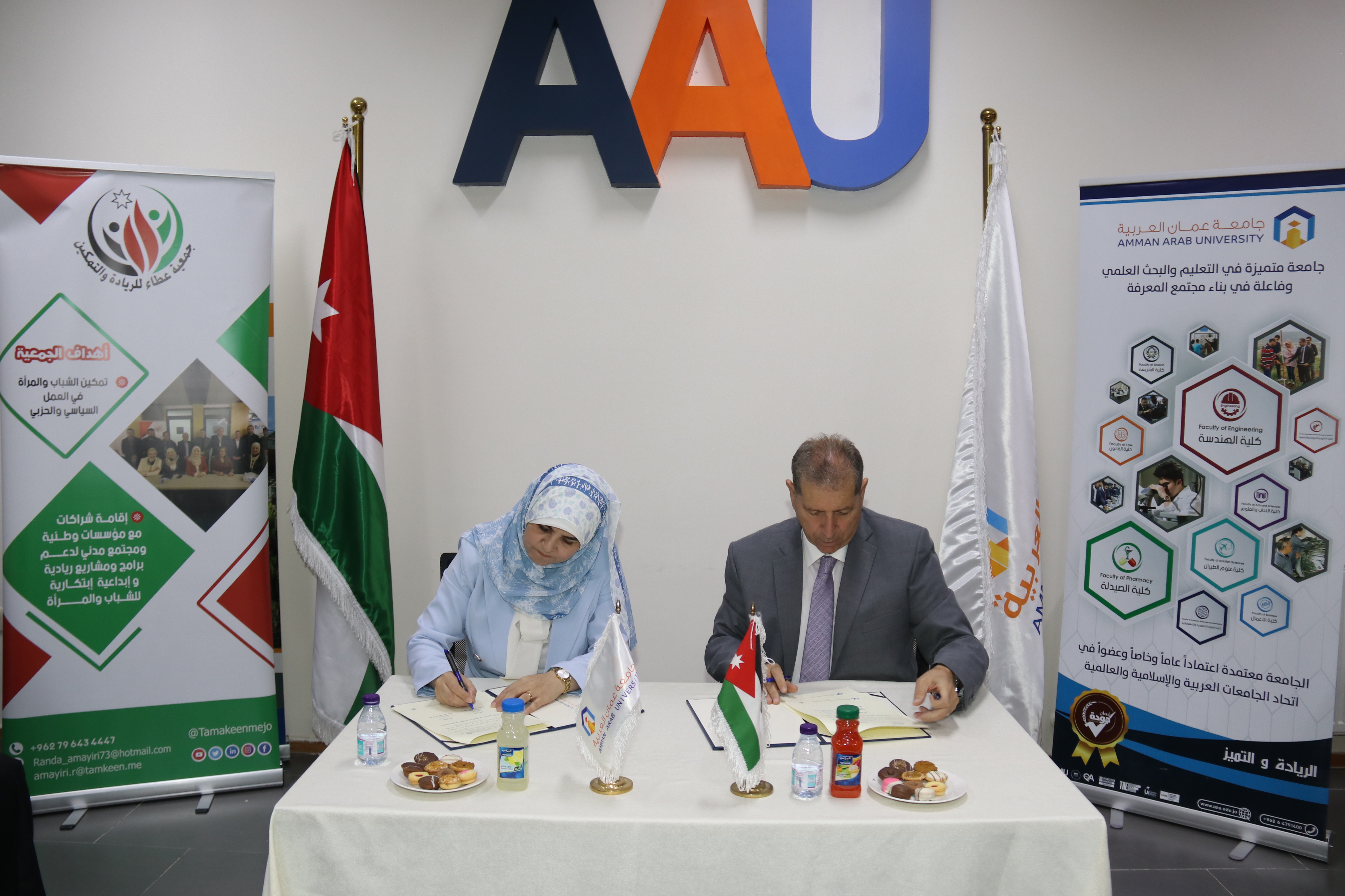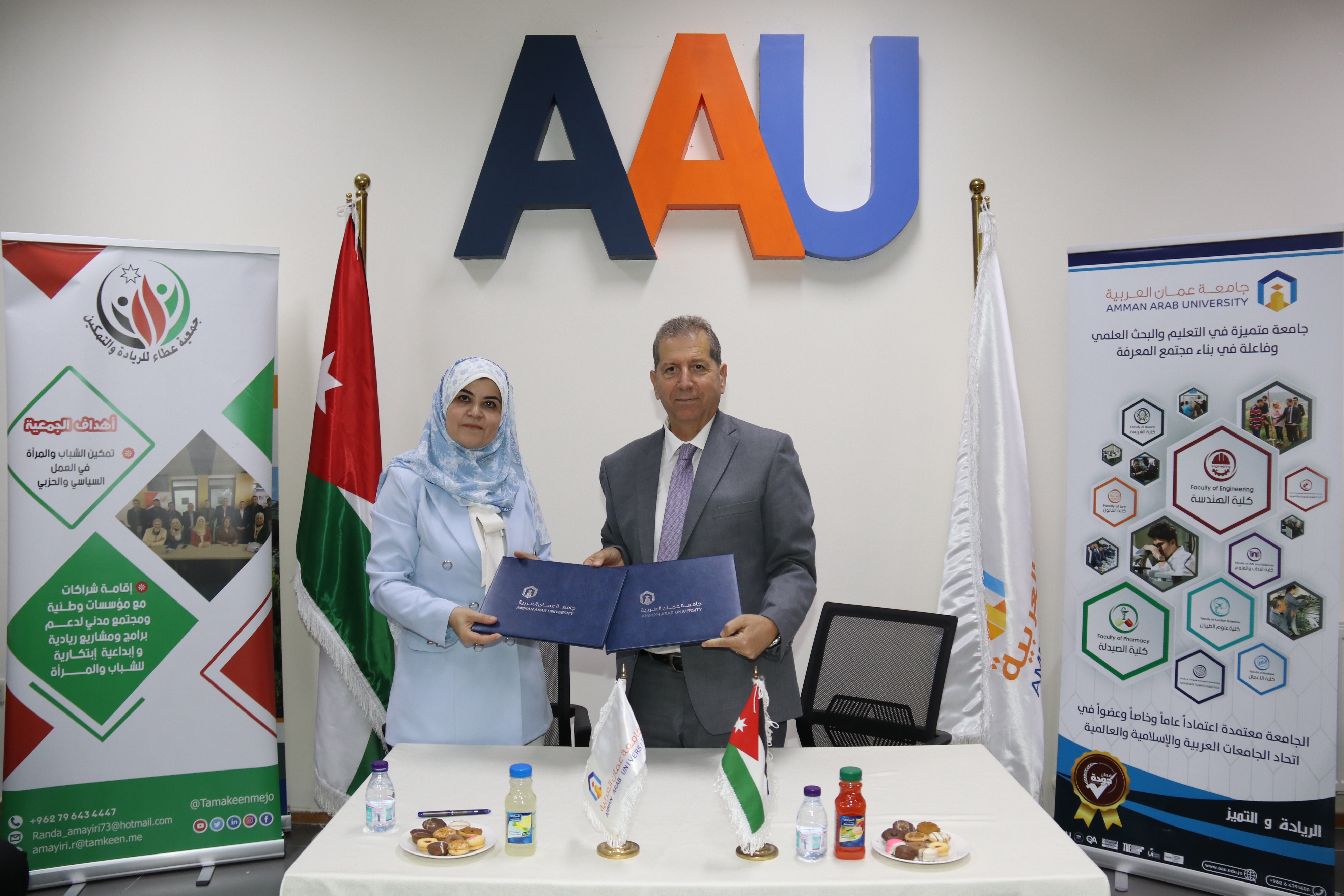 من جانبها قالت الدكتورة عمايرة أننا سعيدون بشراكتنا مع جامعة مرموقة اسمها جامعة عمان العربية والتي تحظى بسمعة كبيرة وعريقة بين الجامعات على المستوى الأقليمي والمحلي لننفذ برامج تتماشى مع تطبيق رؤية صاحب الجلالة الهاشمية وهي تمكين الشباب والمرأة في سوق العمل، مبينتاً بأن الجمعية تعمل بروح التطوع وخدمة المجتمع من انطلاقة حب الخير والعمل التطوعي بدورات وورشات عمل للشباب وإرشاد طلاب الجامعات في حياتهم الجامعية.
