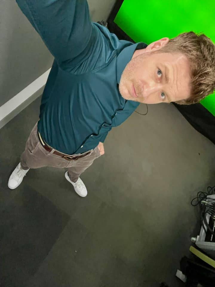 توماس شافرنيكر ، مراسل بي بي سي يستعرض قميصه Tomasz schafernaker - من الصفحة الرسمية ل tomasz schafernaker عبر الفيس بوك.